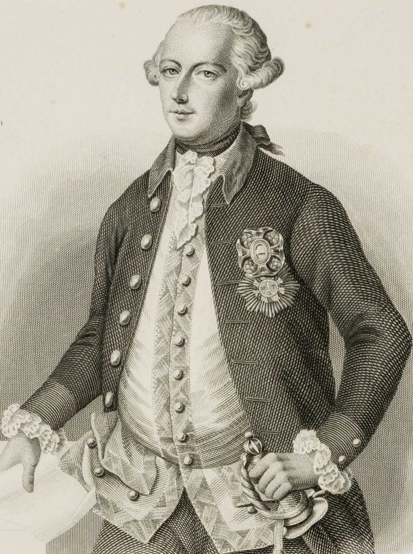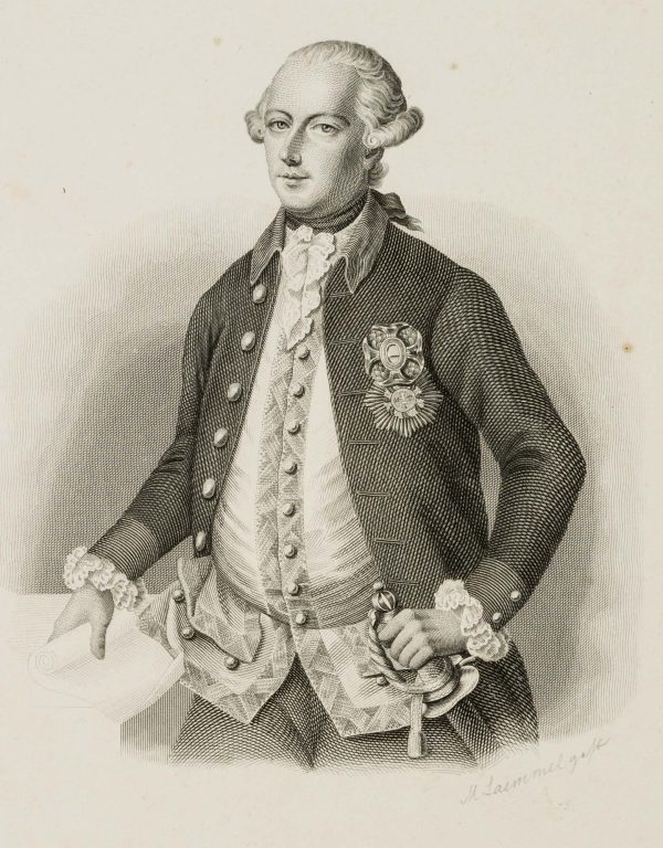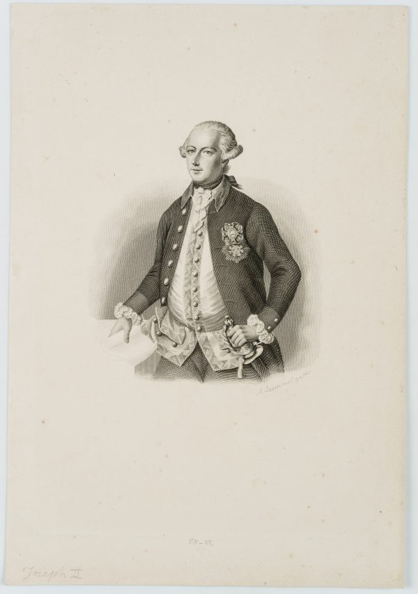 Martin Moritz Lämmel (born 1849 Kulkwitz), Portrait of Joseph II (1741, Vienna – 1790, ibid) Holy Roman Emperor with sword and breast stars, 19th century, Steel engraving