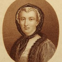 - Description: Portrait of the bust in three-quarter profile. The sitter wears a bonnet and a scarf loosely wrapped around her head.