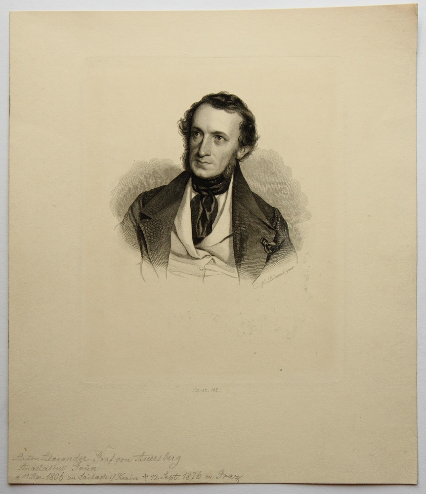 Martin Moritz Lämmel (*1849 Kulkwitz), Porträt des Lyrikers Anastasius Grün (1806-1876), 19. Jahrhundert, Stahlstich