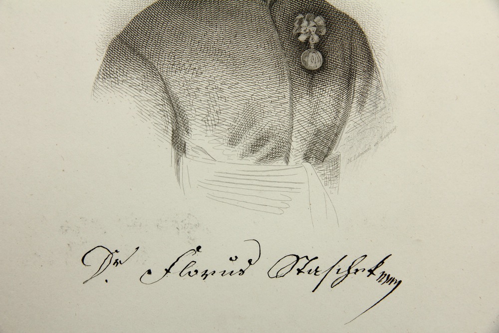• Bezeichnung: Unterhalb der Darstellung in der Druckplatte signiert und mit der faksimilierten eigenhändigen Unterschrift des Dargestellten versehen.