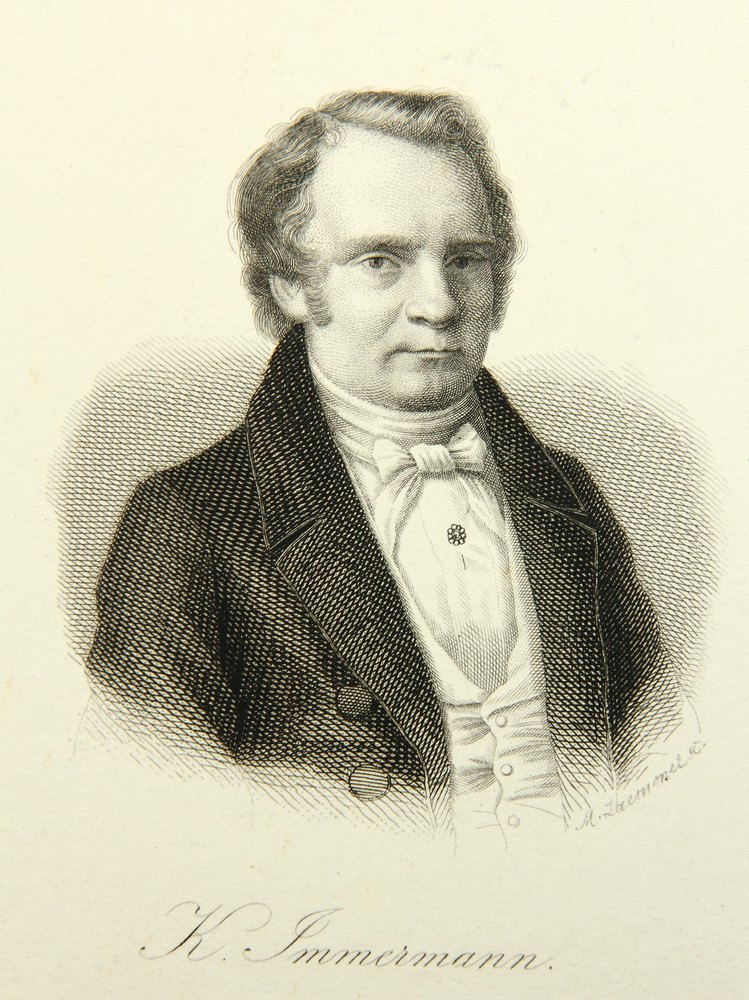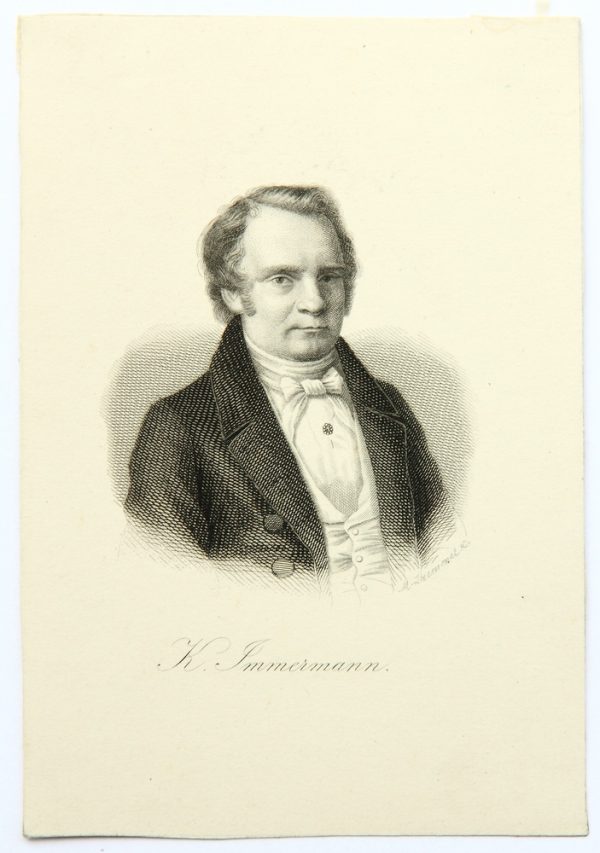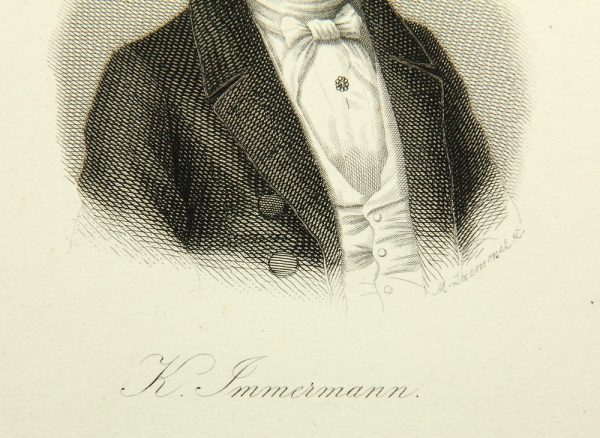 Martin Moritz Lämmel (born 1849 Kulkwitz), Portrait of the German writer, poet and jurist Karl Immermann (1796 Magdeburg – 1840 Düsseldorf), district court councillor in Düsseldorf and author of numerous dramatic tragedies and comedy plays, 19th century, Steel engraving