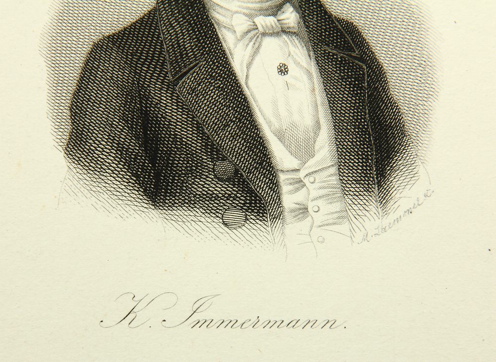 Martin Moritz Lämmel (*1849 Kulkwitz), Porträt des deutschen Schriftstellers, Dichters und Juristen Karl Immermann (1796 Magdeburg – 1840 Düsseldorf), Landgerichtsrat in Düsseldorf und Verfasser zahlreicher dramatischer Tragödien und Lustspiele, 19. Jahrhundert, Stahlstich