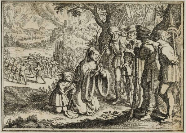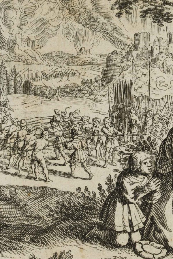 - Description: The killing of Count Ludwig von Helfenstein and his companions at the gates of the town of Weinsberg by rebellious peasants during the German Peasants’ War on 16 April 1525, an Easter Sunday, went down in history as the Weinsberg Bloody Deed. The present depiction bears witness to that very event, the kneeling countess, accompanied by her son, begging the insurgents for mercy. Margaretha von Helfenstein and her son, however, were spared.