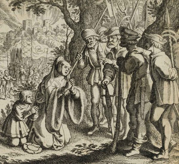 Matthäus Merian (1621 Basel – 1687 Frankfurt am Main), Gräfin Helfenstein bittet Jäcklein Rohrbach um Gnade für ihren Mann, , Kupferstich