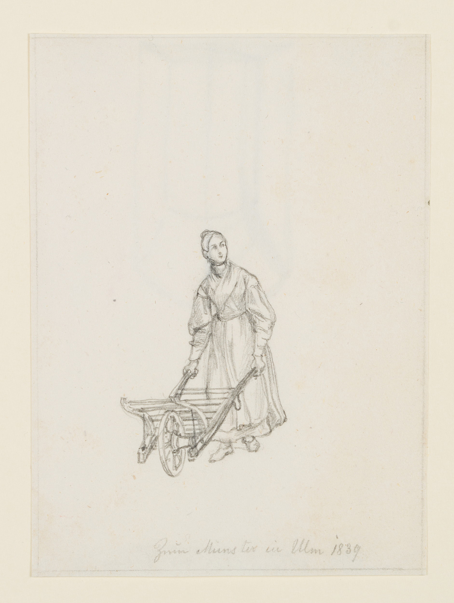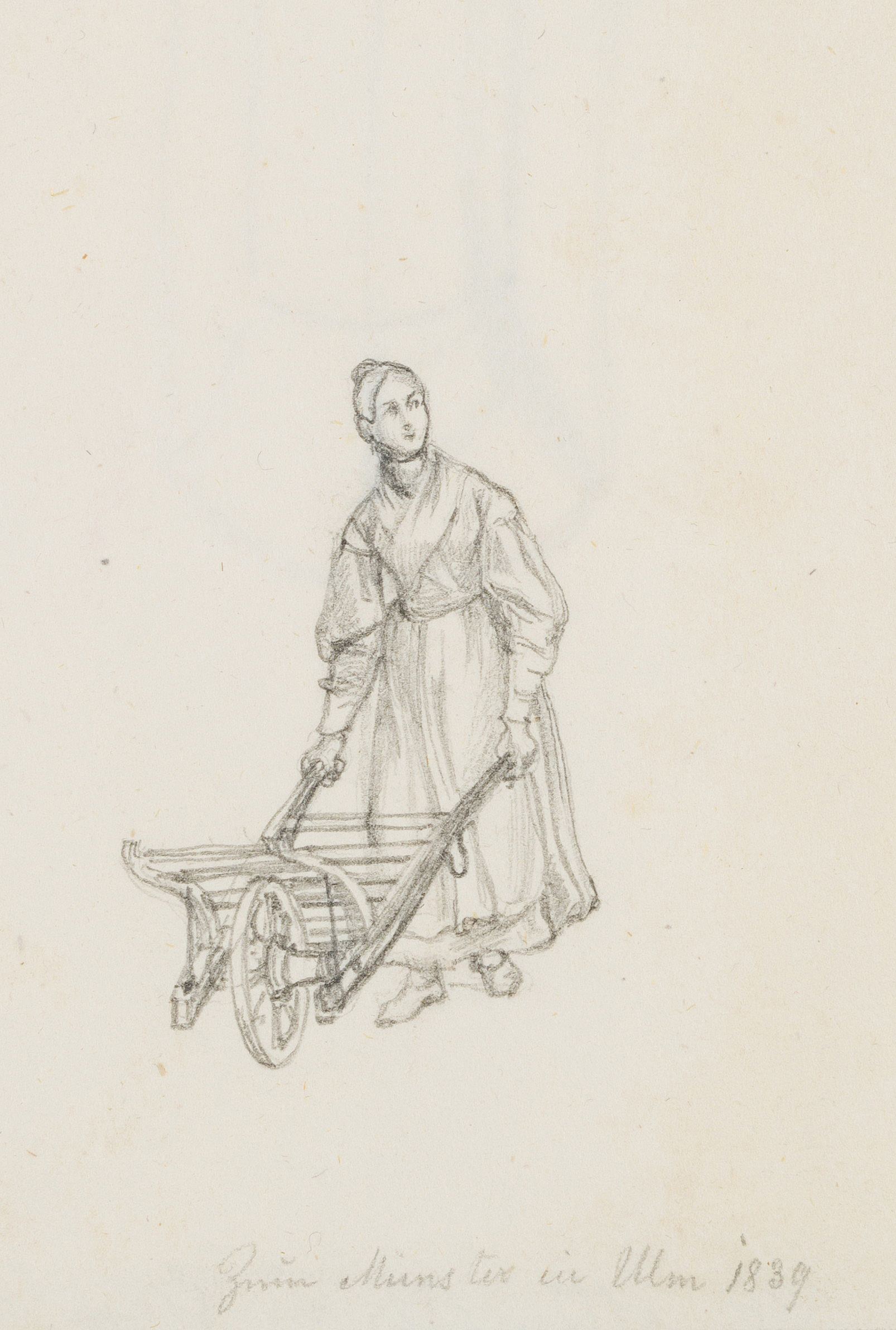Michael Neher (1798 München – 1876 ebd.), Frau mit Schubkarre, 1839, Bleistift