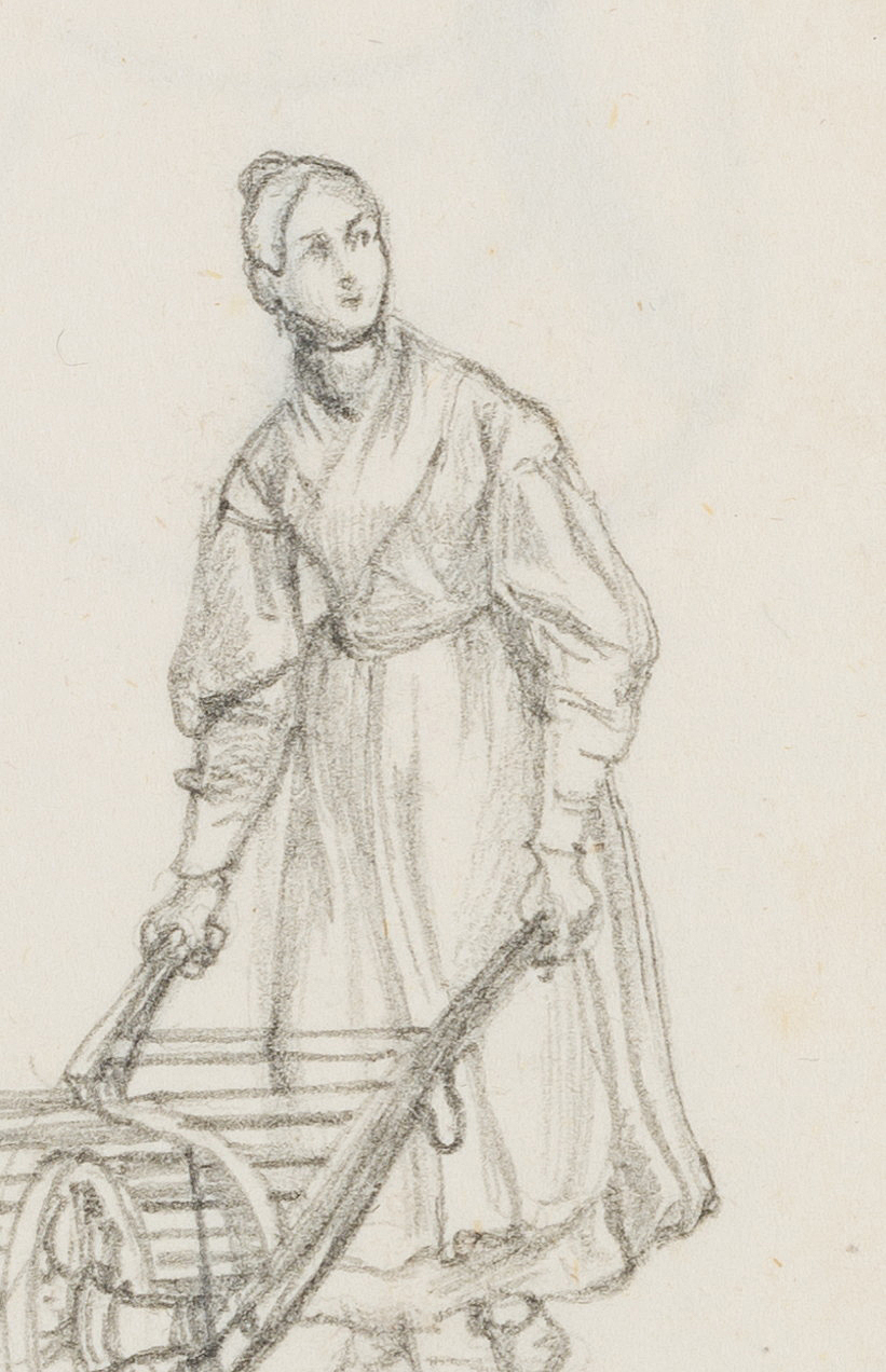 Michael Neher (1798 Munich – 1876 ibid.), Woman with wheelbarrow, 1839, Pencil
