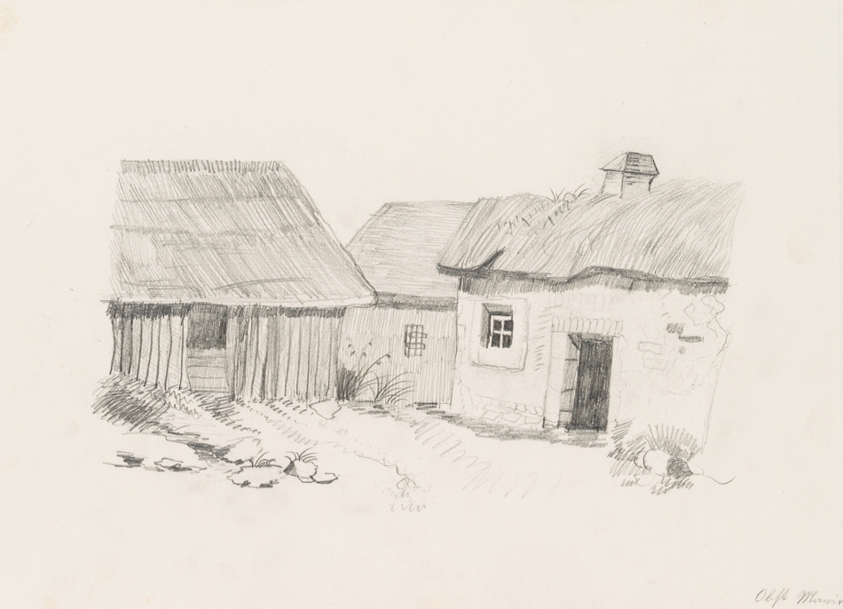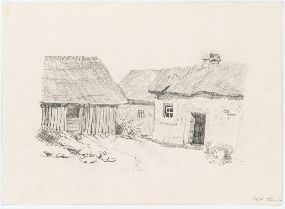M. Obst (19th century), Group of farms, 19th century, Pencil