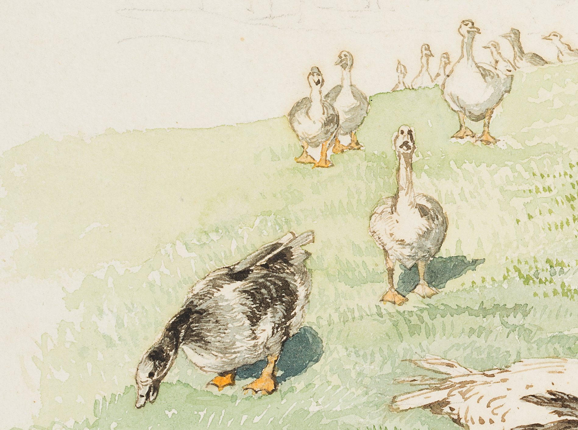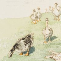 Marie von Savigny (1831 Boitzenburg – 1905 ), A discontented goose with a hungry flock of geese, c. 1870, Watercolor