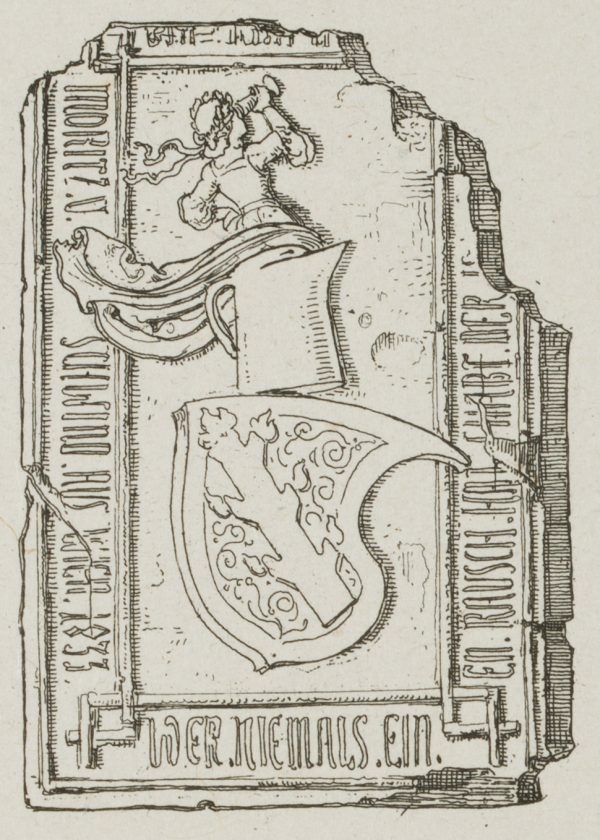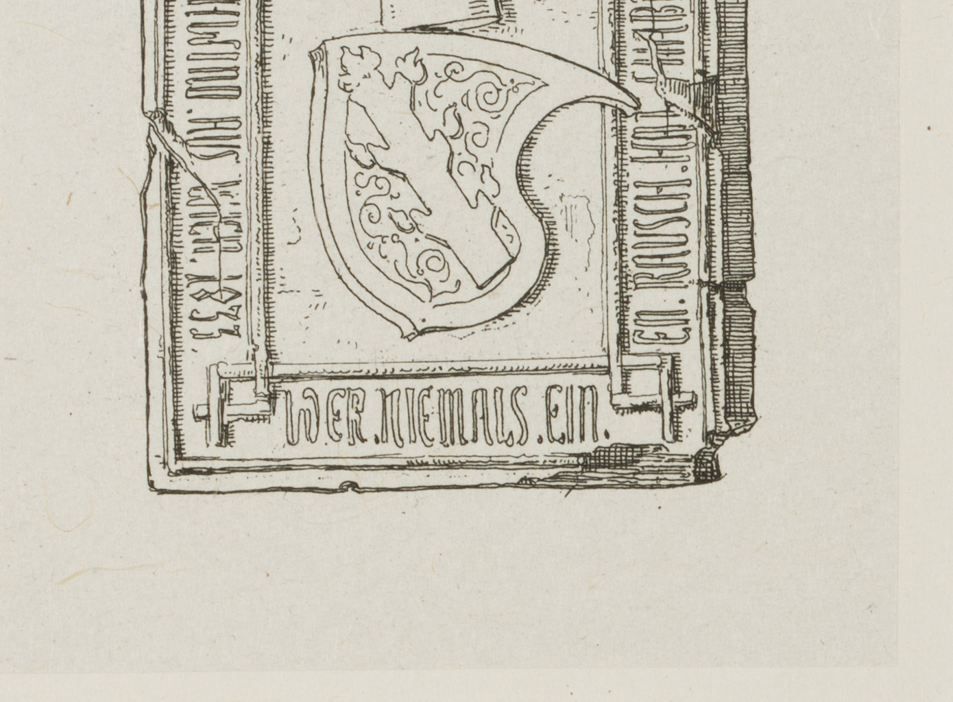 Moritz von Schwind (1804 Wien – 1871 München), Der mürbe Leichenstein, Grabstein eines Ritters, 19. Jahrhundert, Radierung