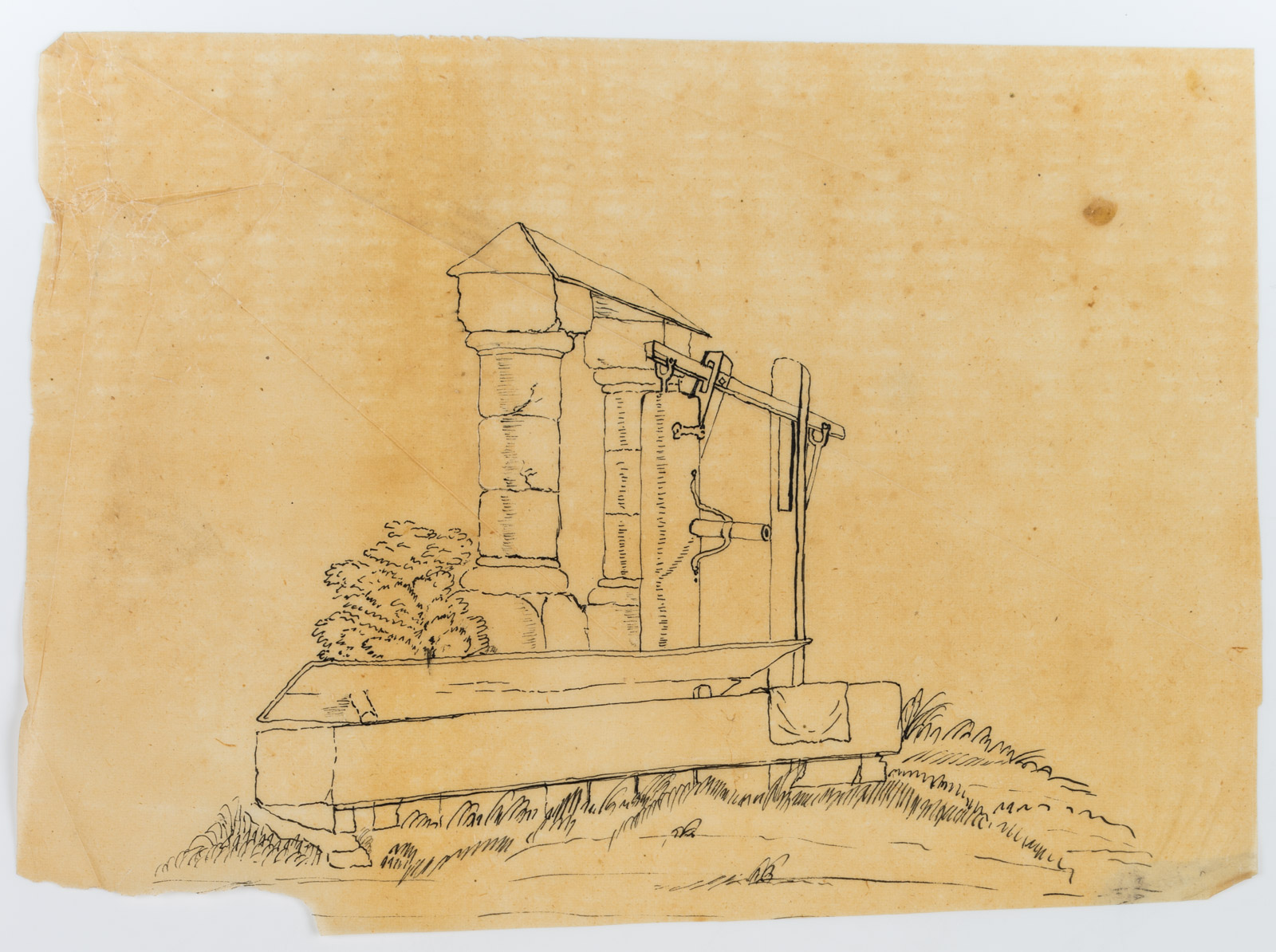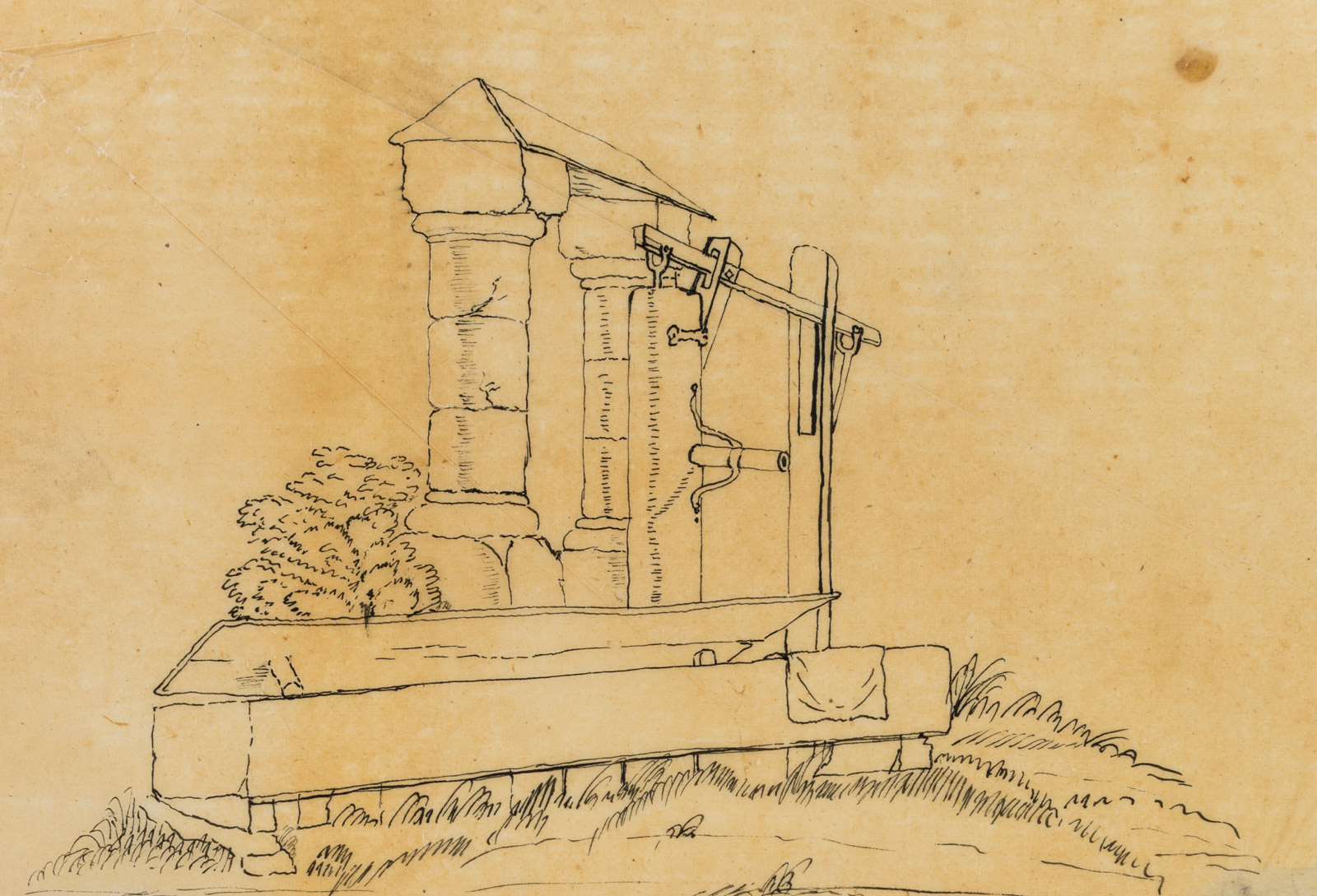 Moritz von Schwind (1804 Vienna – 1871 Munich) Circle, Well and watering place, c. 1840, Pen drawing