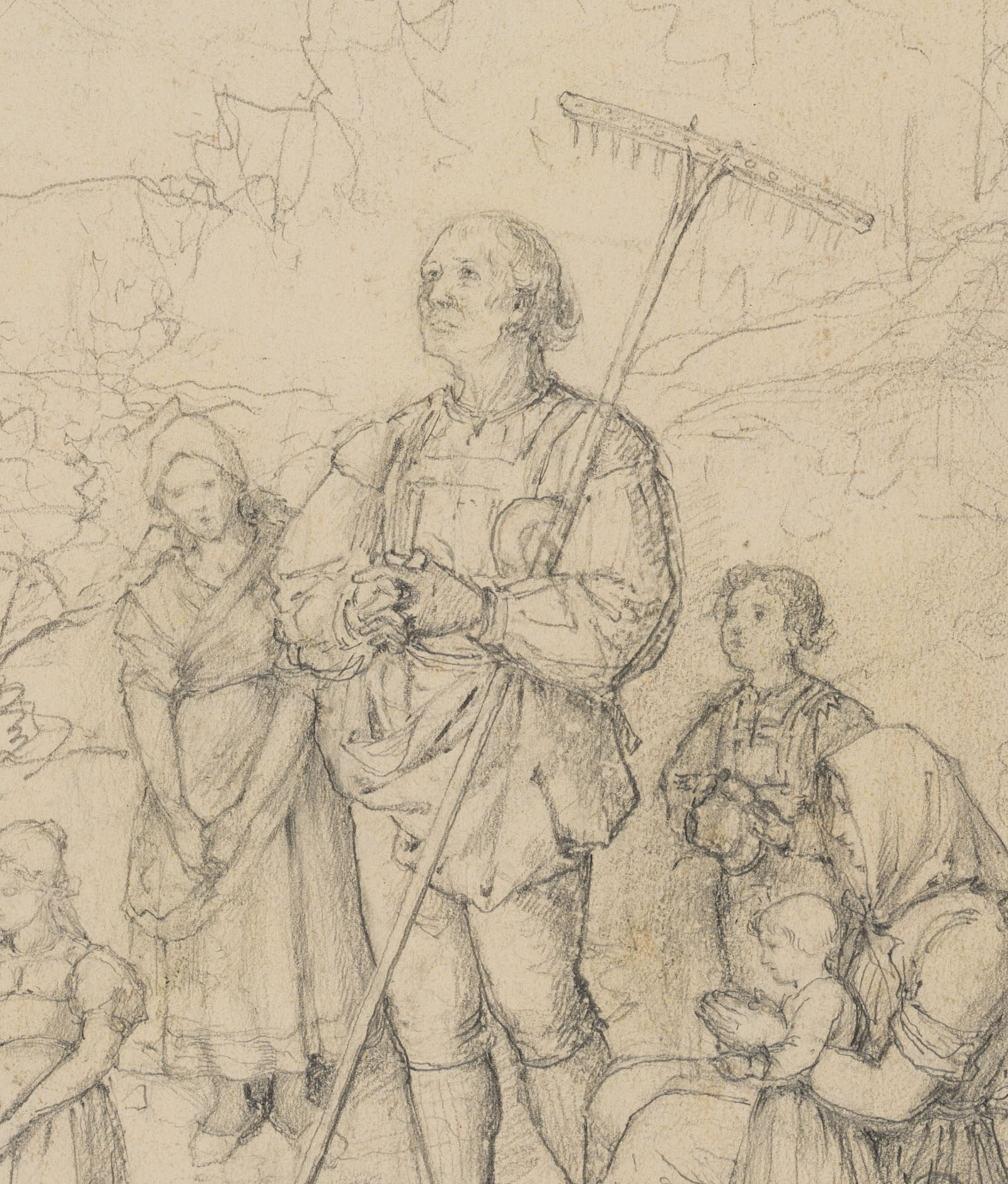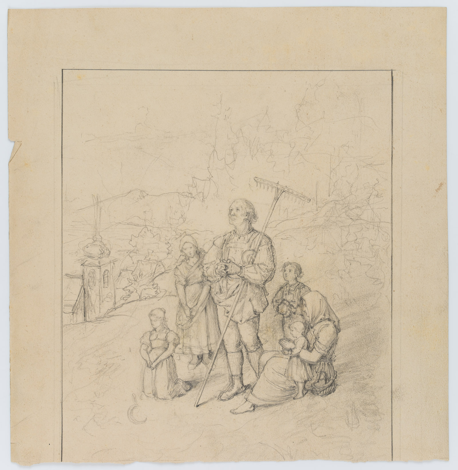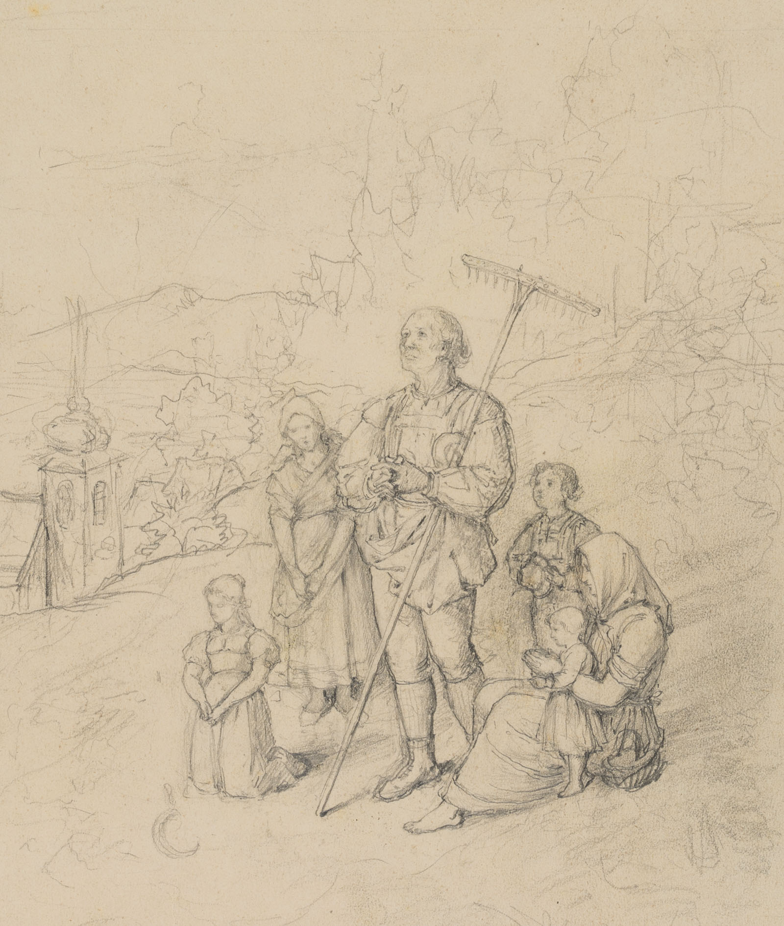 Moritz von Schwind (1804 Vienna – 1871 Munich) Circle, Frommer farmer with family, c. 1840, Pencil