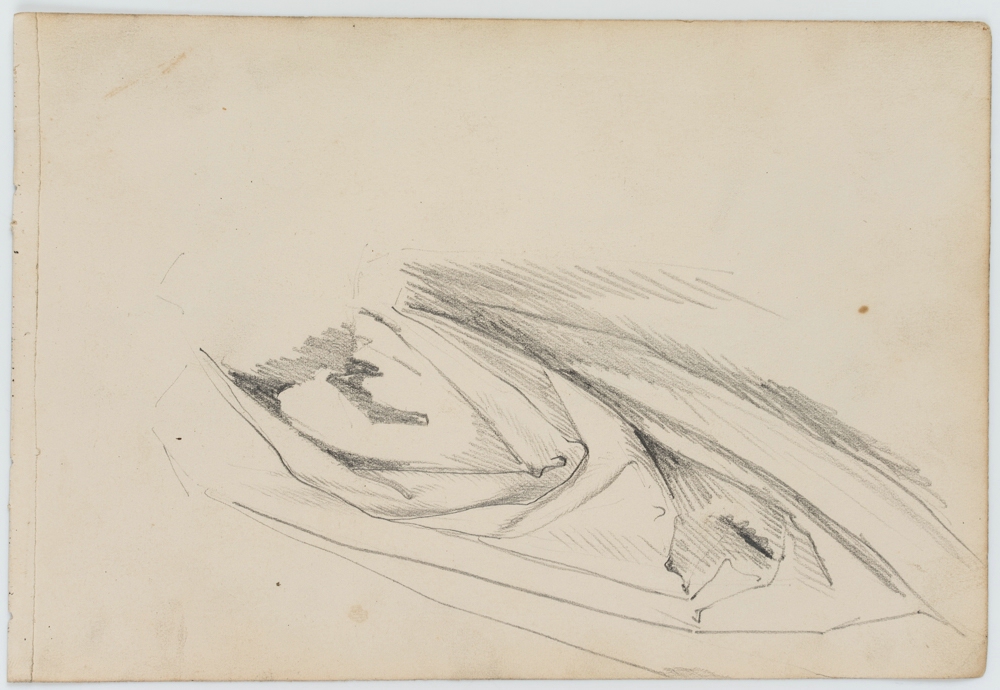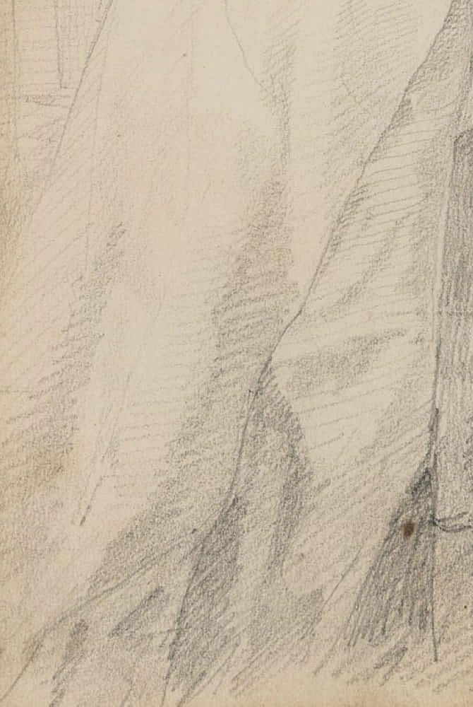 - Inscription: Inscribed by the artist at lower right: “Skizze zu meinem Bild des S. Alfons”. On the reverse is a quickly sketched study of a robe and folds.