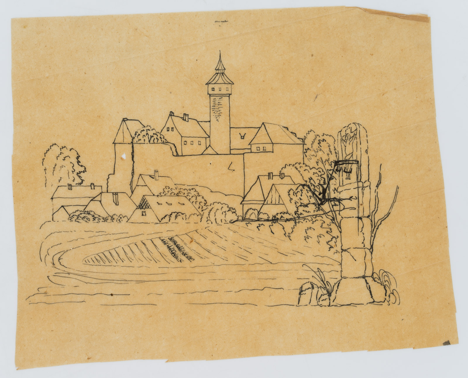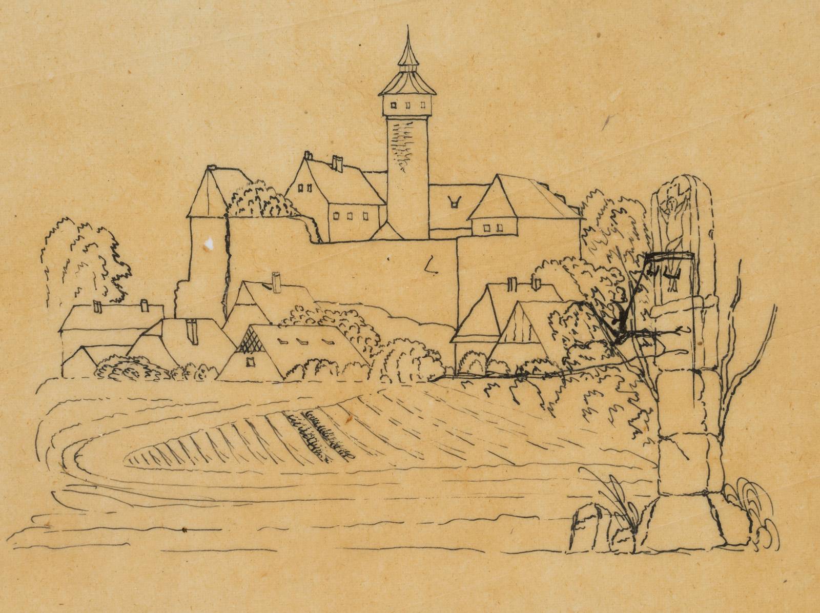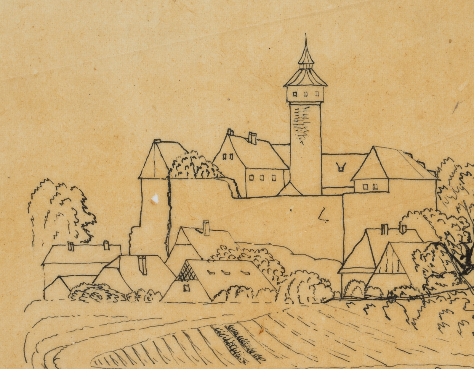 Moritz von Schwind (1804 Vienna – 1871 Munich) Circle, Fairytale castle with keep, c. 1840, Pen drawing