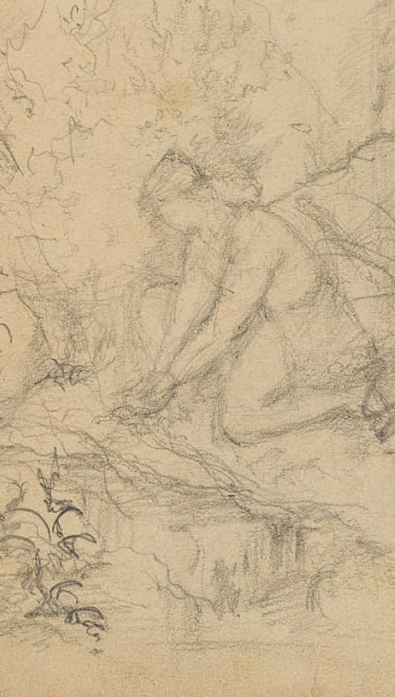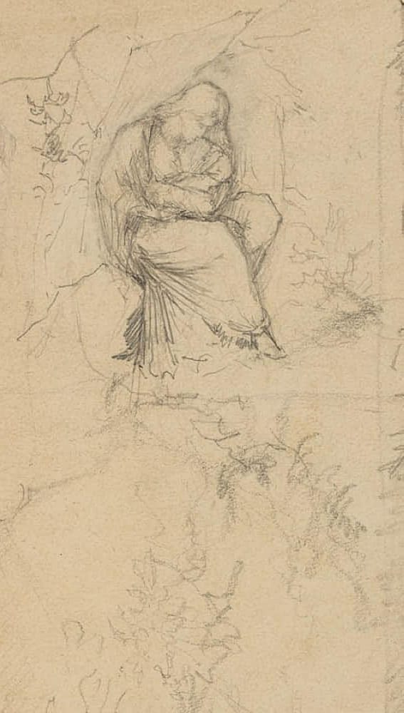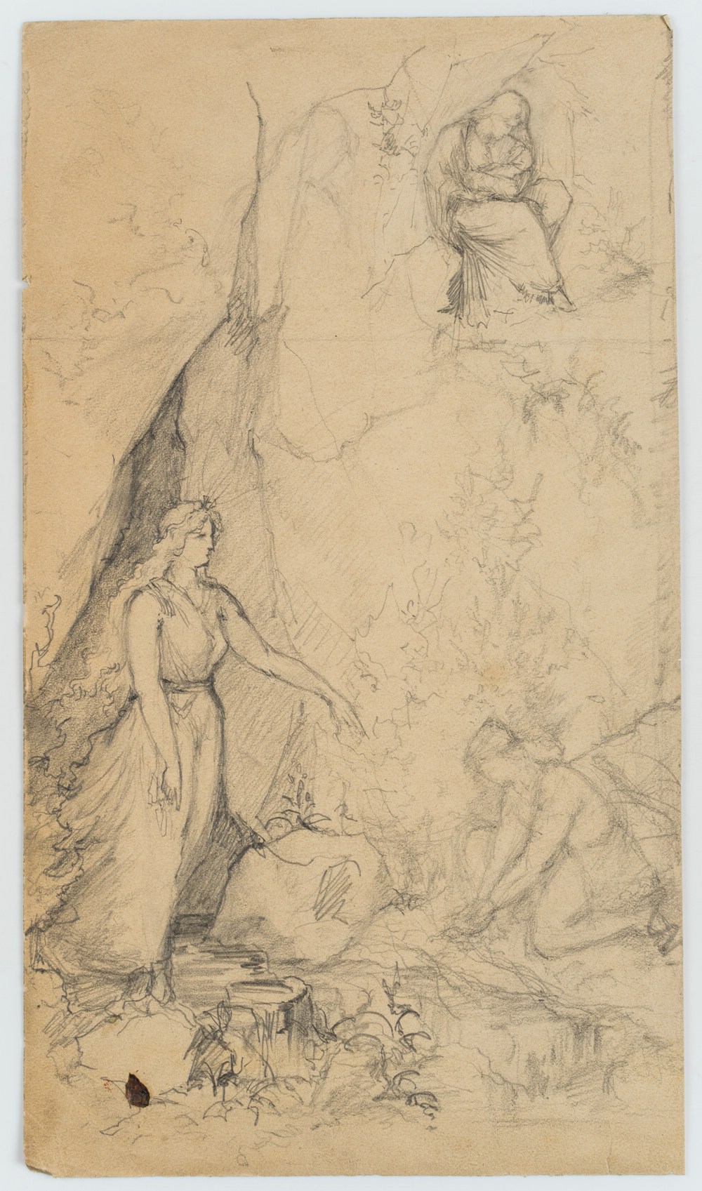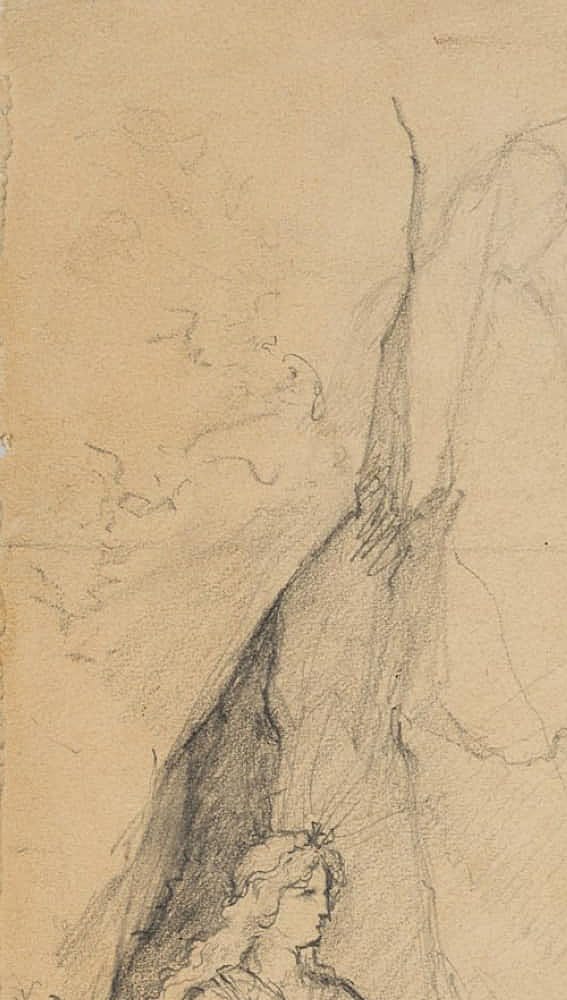 - Description: The sheet comes from a sketchbook by an anonymous artist from the circle of the famous history painter Moritz von Schwind (1804 Vienna – 1871 Niederpöcking), who is one of the most important painters of the German late Romantic period. As in Schwind’s works, the sketchbook contains numerous depictions of history scenes or illustrations of fairy tales and legends as well as religious themes.
