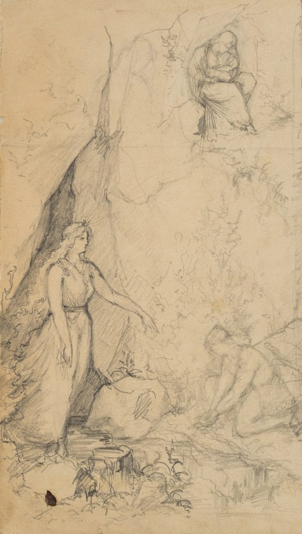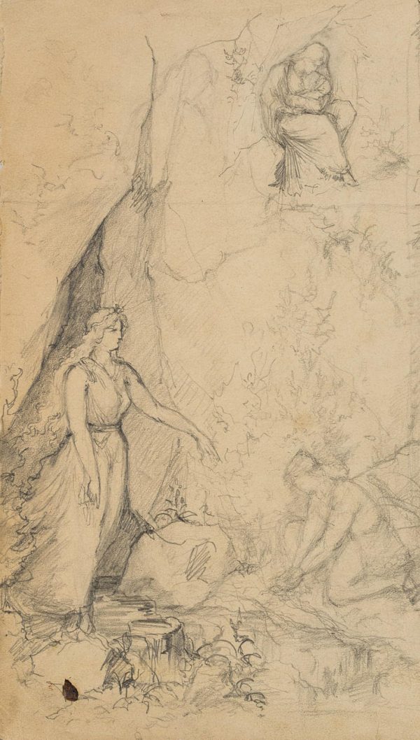 Moritz von Schwind (1804 Vienna – 1871 Munich) Circle, Siegfried and Genoveva in the Woods, c. 1840, Pencil