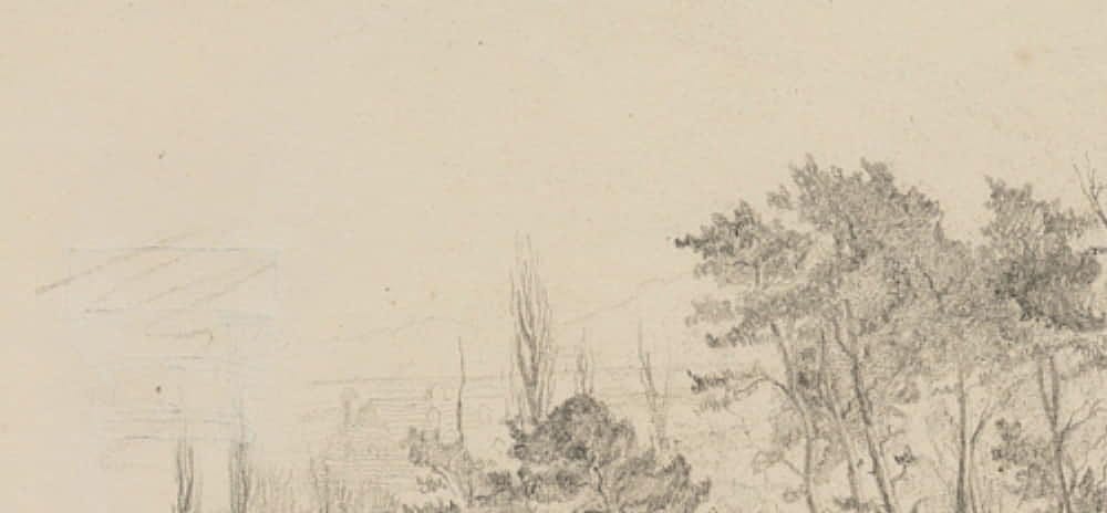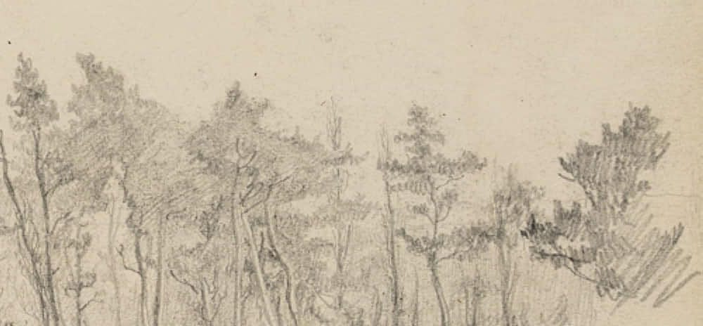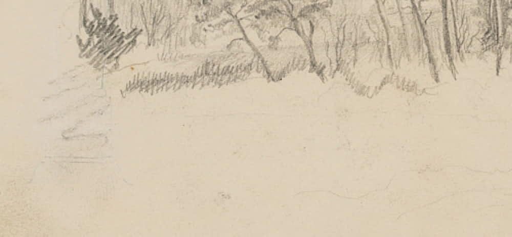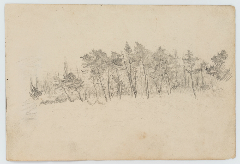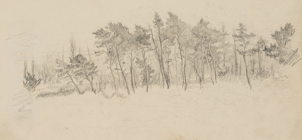Moritz von Schwind (1804 Vienna – 1871 Munich) Circle, Sketch of a group of trees on a hill, c. 1840, Pencil