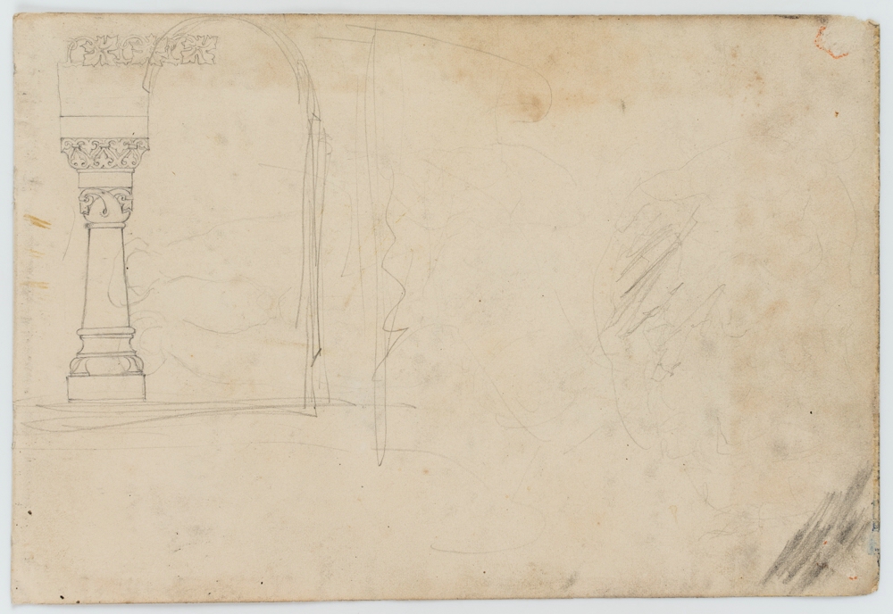 - Description: The sheet comes from a sketchbook by an anonymous artist from the circle of the famous history painter Moritz von Schwind (1804 Vienna – 1871 Niederpöcking), who is one of the most important painters of the German late Romantic period. As in Schwind’s works, the sketchbook contains numerous depictions of history scenes or illustrations of fairy tales and legends as well as religious themes.