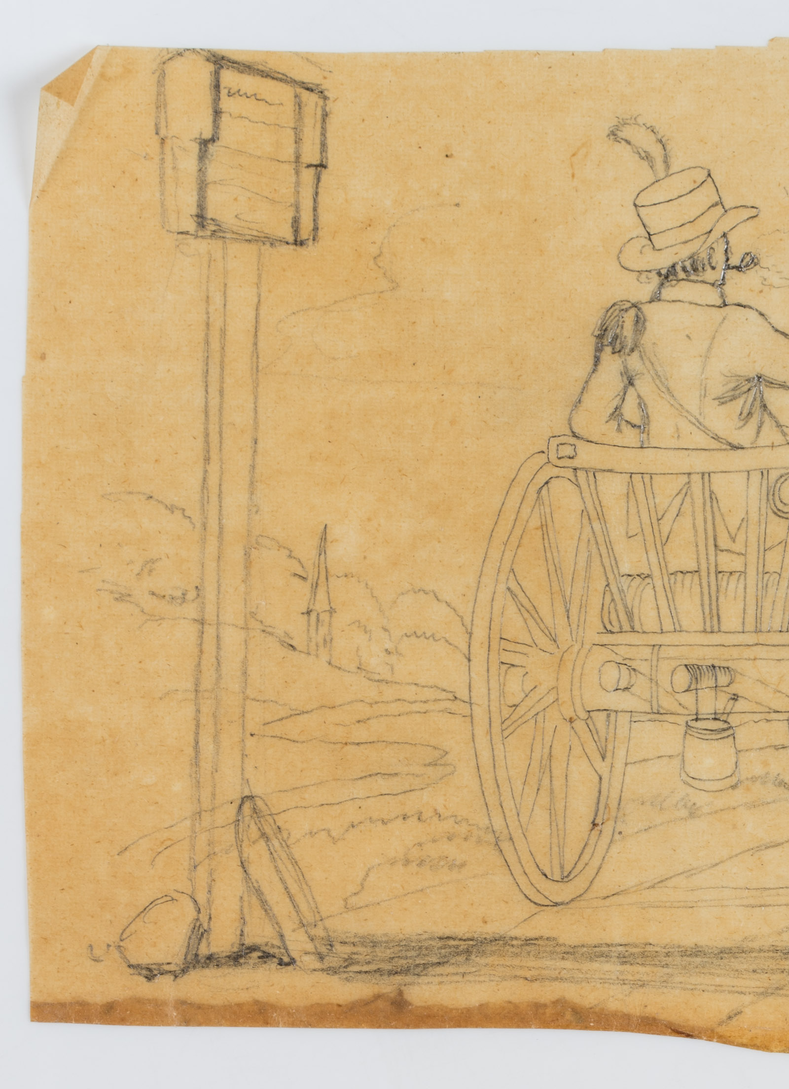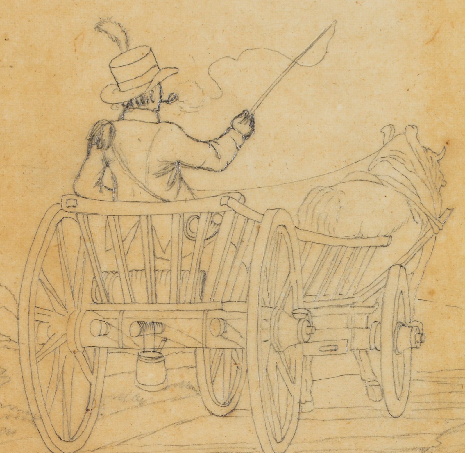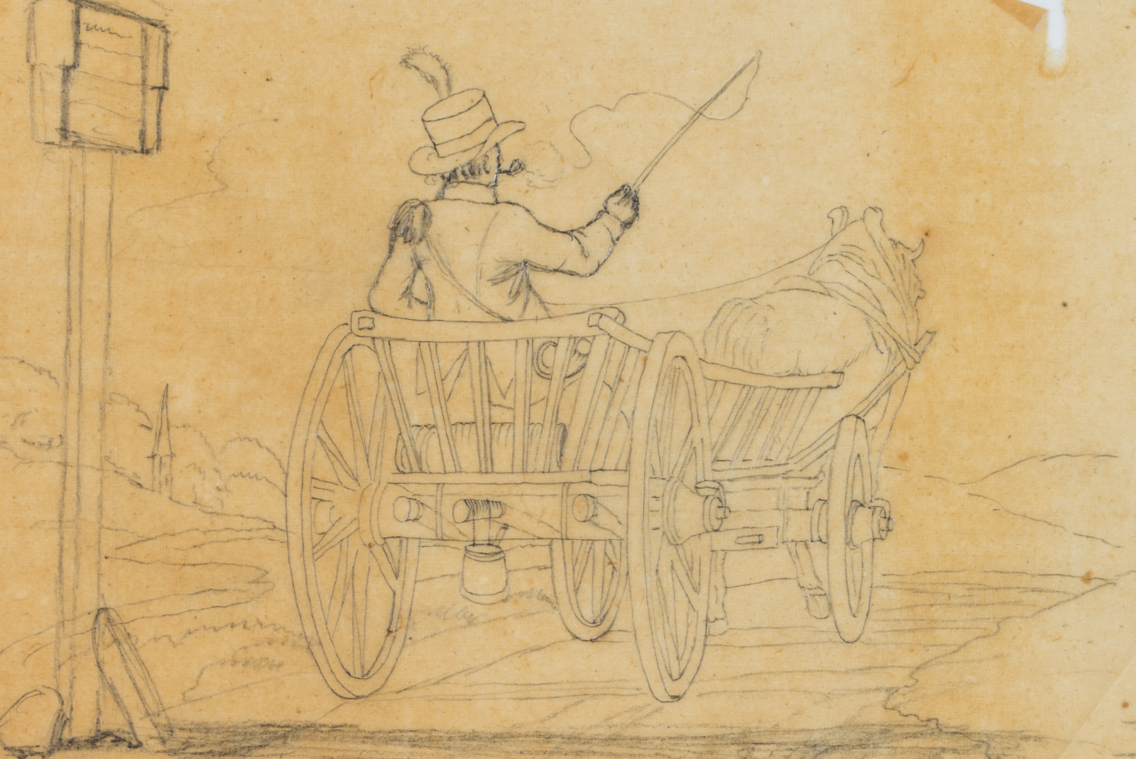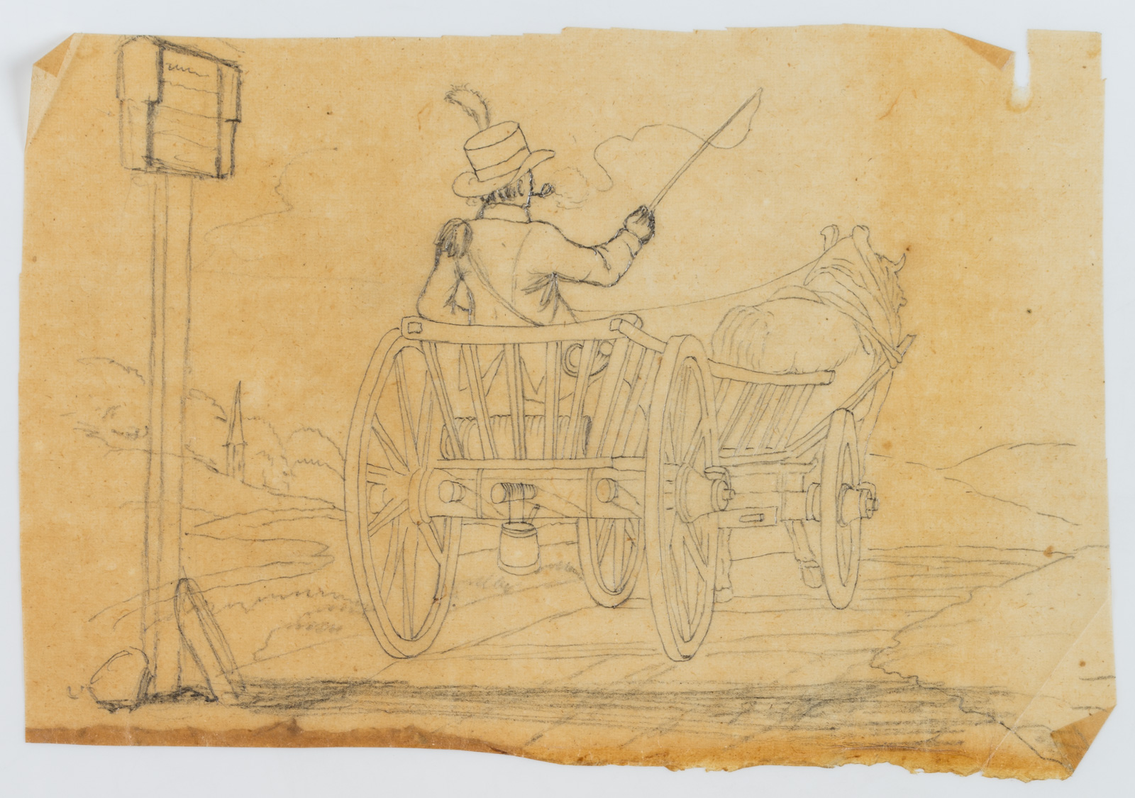 Moritz von Schwind (1804 Vienna – 1871 Munich) Circle, Sketch of a carriage driver in a ladder wagon, c. 1840, Pencil