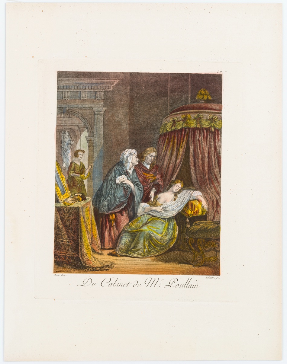 • Inscription: Inscribed lower left: “Mieris Pinx.”; signed lower right: “Maleuvre sc.”. Inscribed lower centre: “Du Cabinet de Mr. Poullain”; numbered upper right: “57”.
