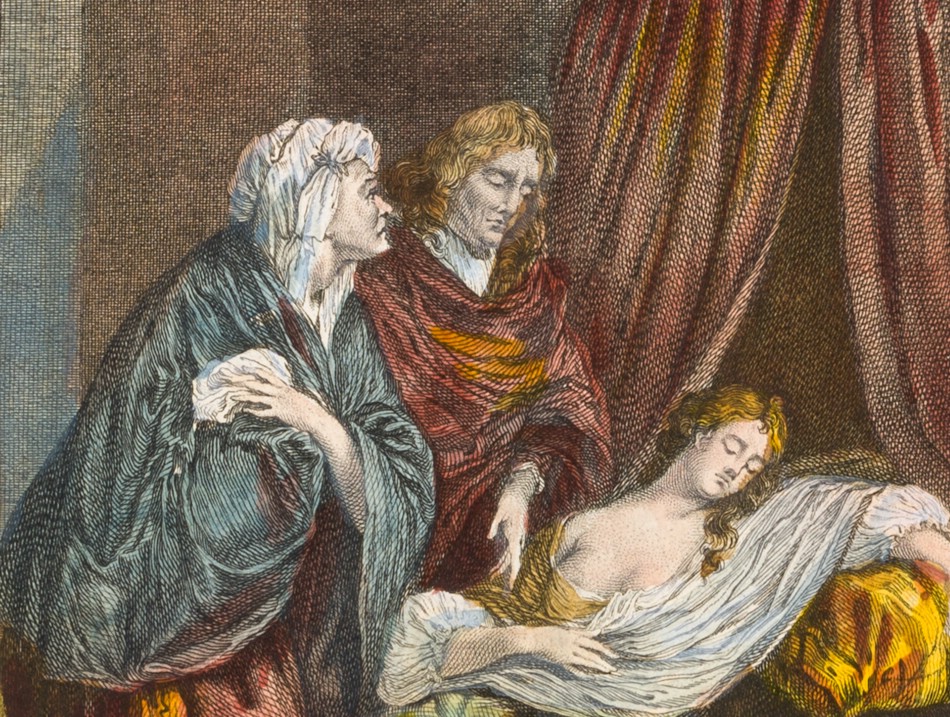 Pierre Maleuvre (1740 Paris – 1803 ebd.) nach Frans van Mieris d. Ä. (1635 – 1681 ), Die Ohnmächtige, 19. Jahrhundert, Kupferstich