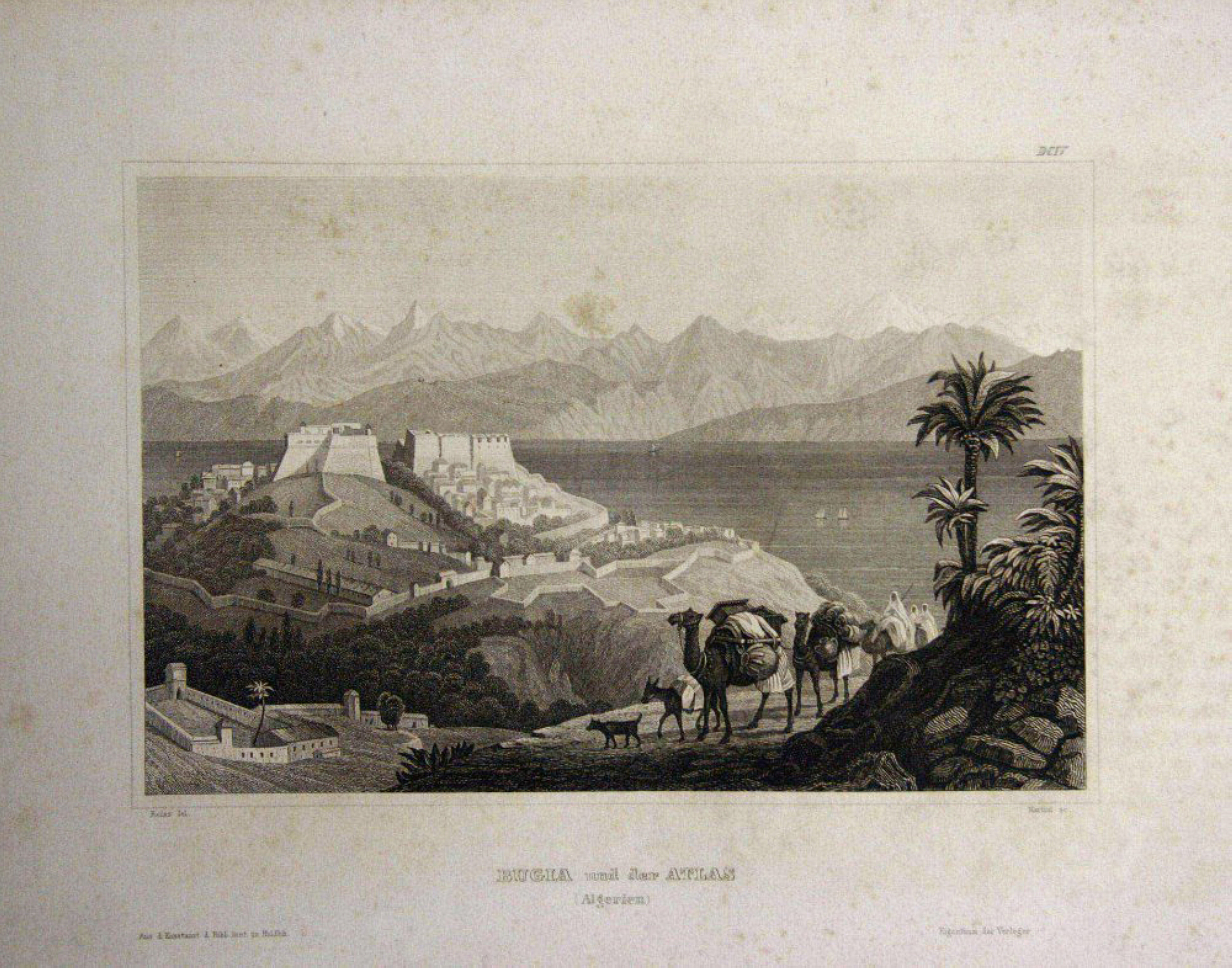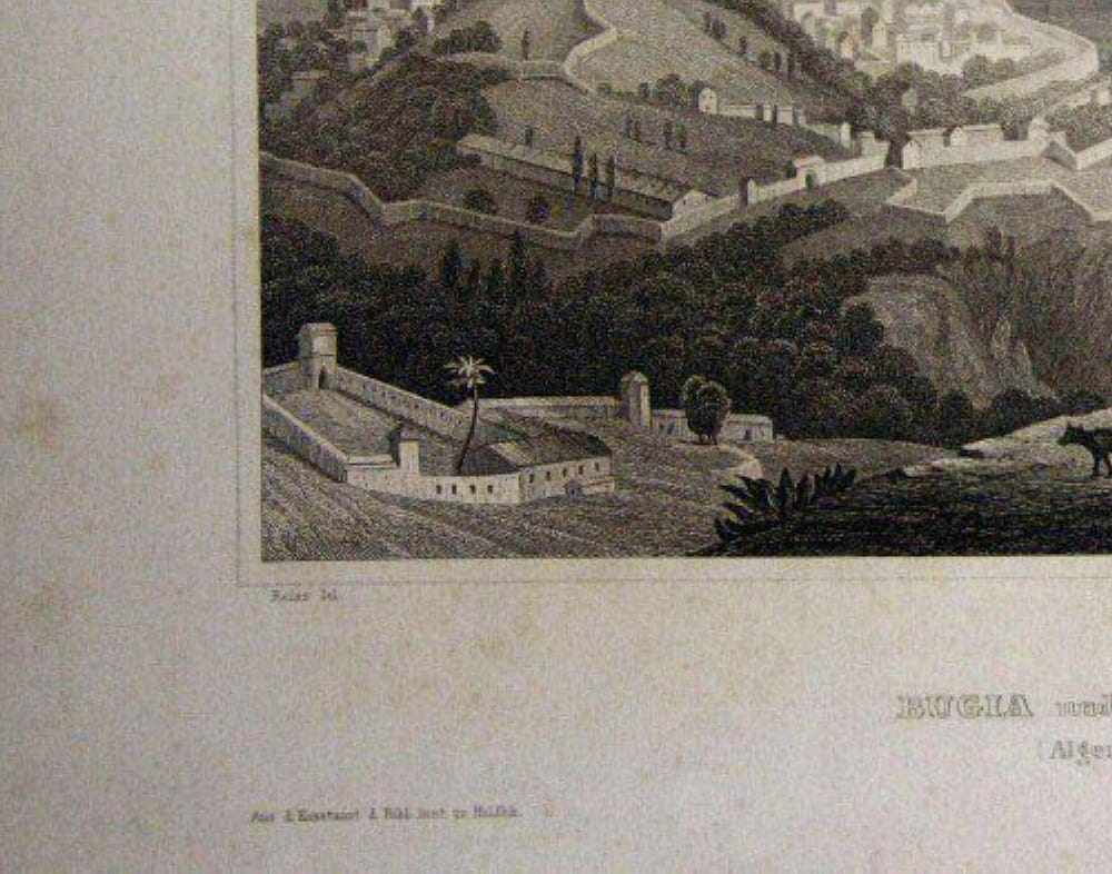 - Description: Martini, View of Bugia and the Sea (Algeria), steel engraving after Reiss, c. 1850. Description: Steel engraving by Martini, inscribed: “Reiss del. Martini sc. , Bugia and the Atlas (Algeria) From the Kunstanst. d. Bibl. Inst. in Hildbgh. “.