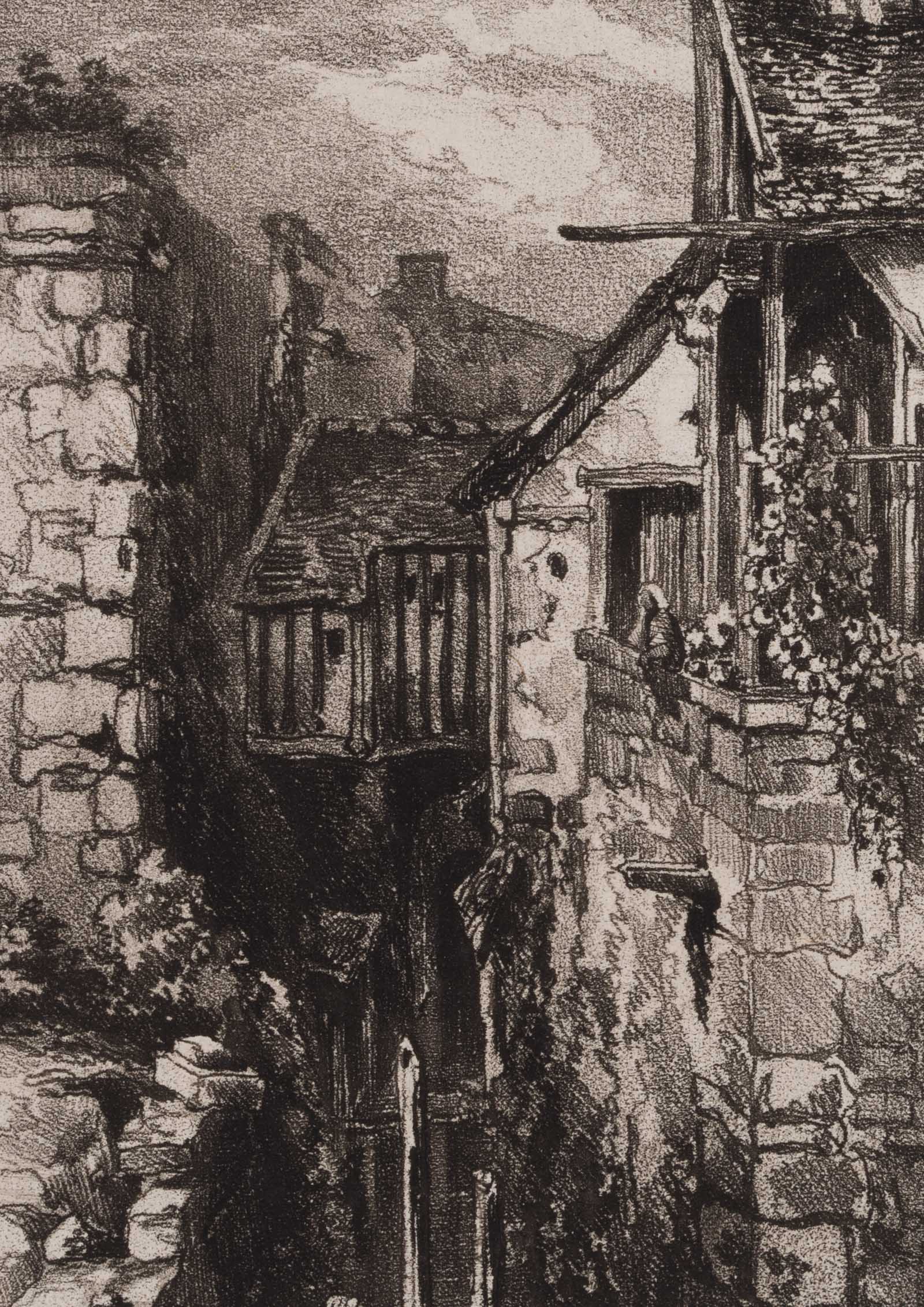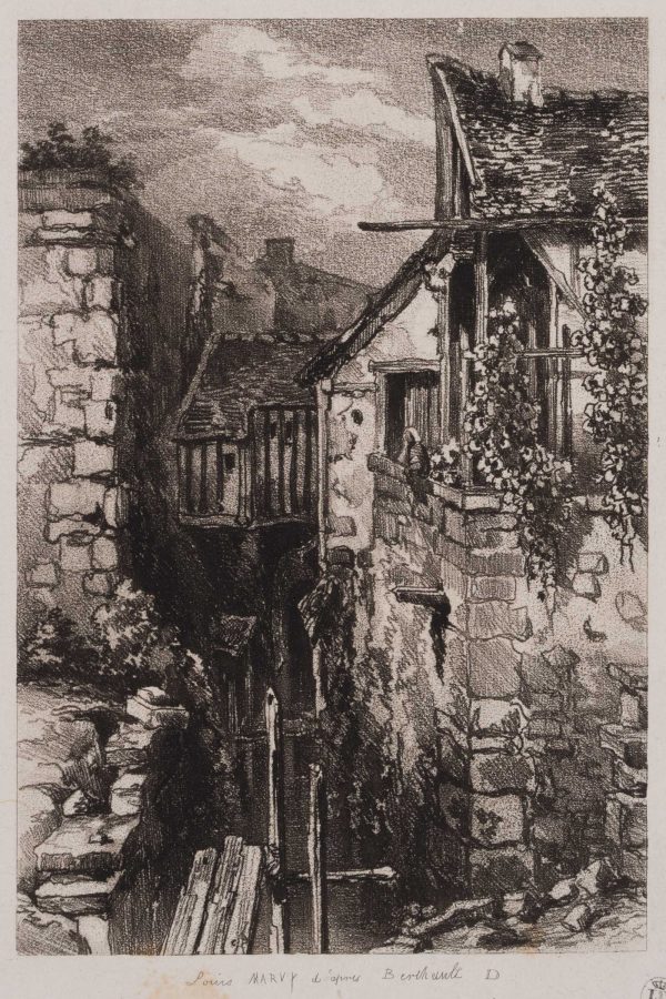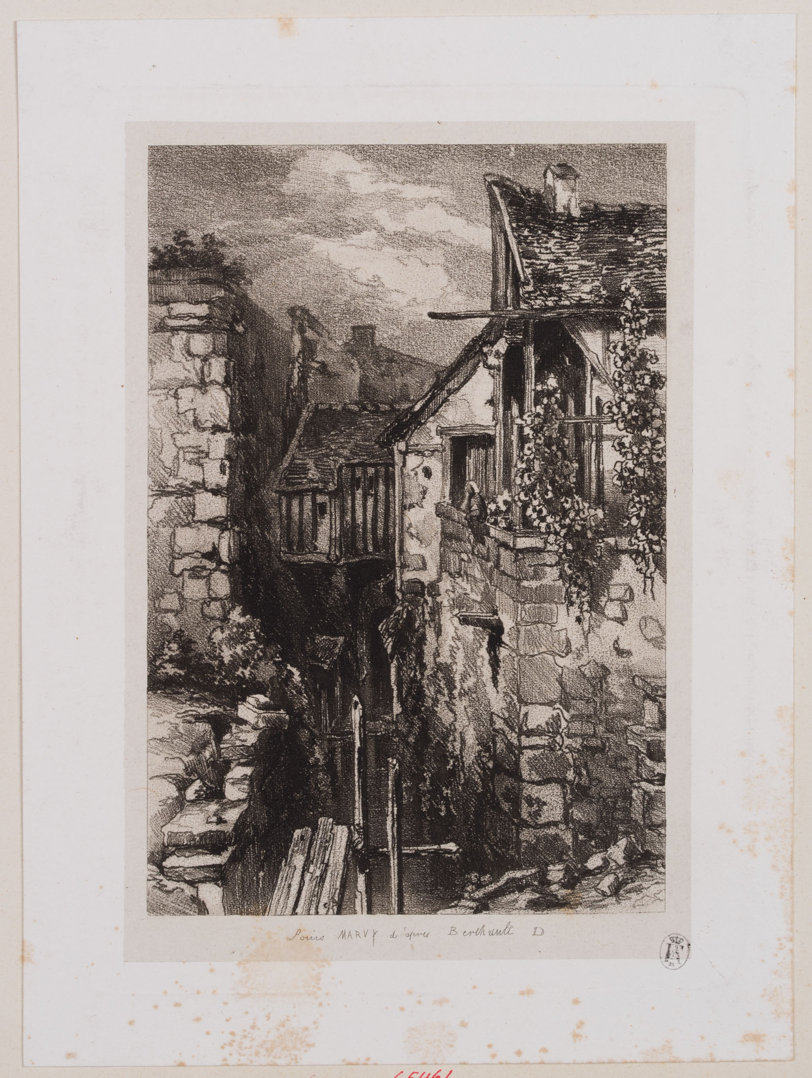 Louis Marvy (19th century) after Pierre Gabriel Berthault (1737 St-Maur (Seine) – 1831 Paris), View through a narrow street of houses made of half-timbering and stone, 19th century, Etching