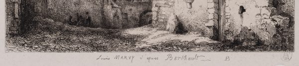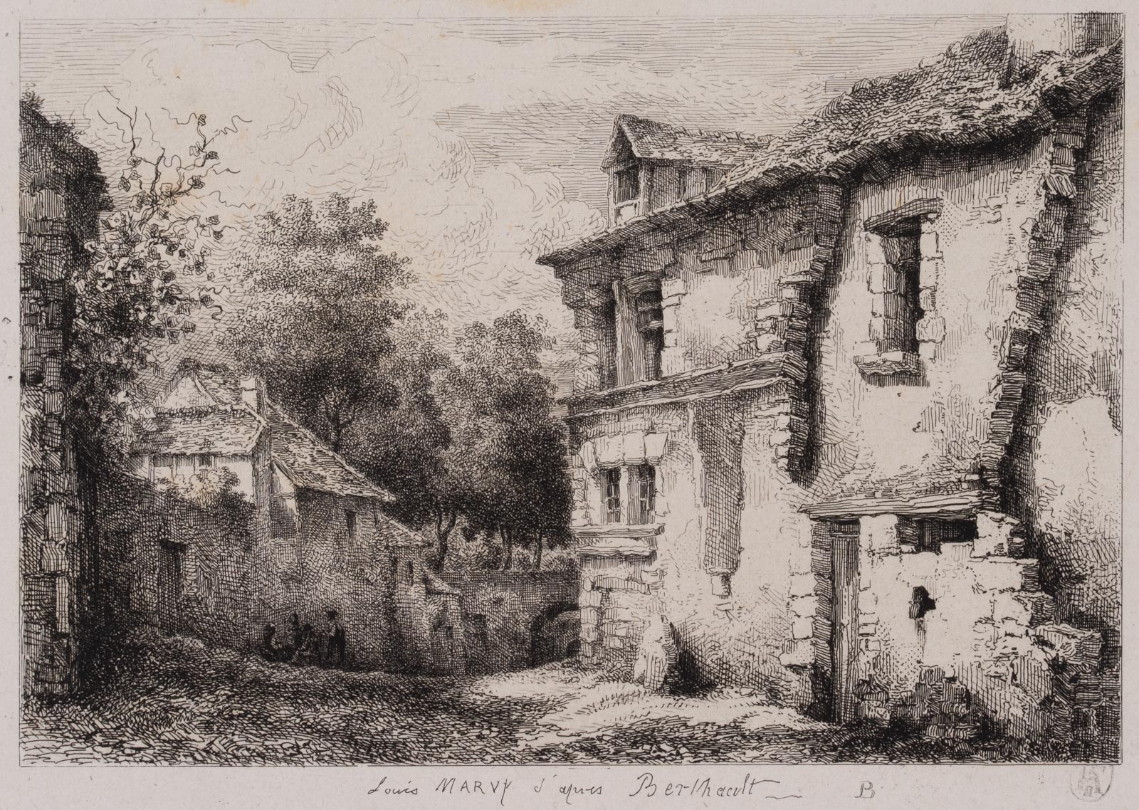 Louis Marvy (19. Jahrhundert) nach Pierre Gabriel Berthault (1737 St-Maur (Seine) – 1831 Paris), Blick in den Innenhof eines altem Gehöfts, 19. Jahrhundert, Radierung
