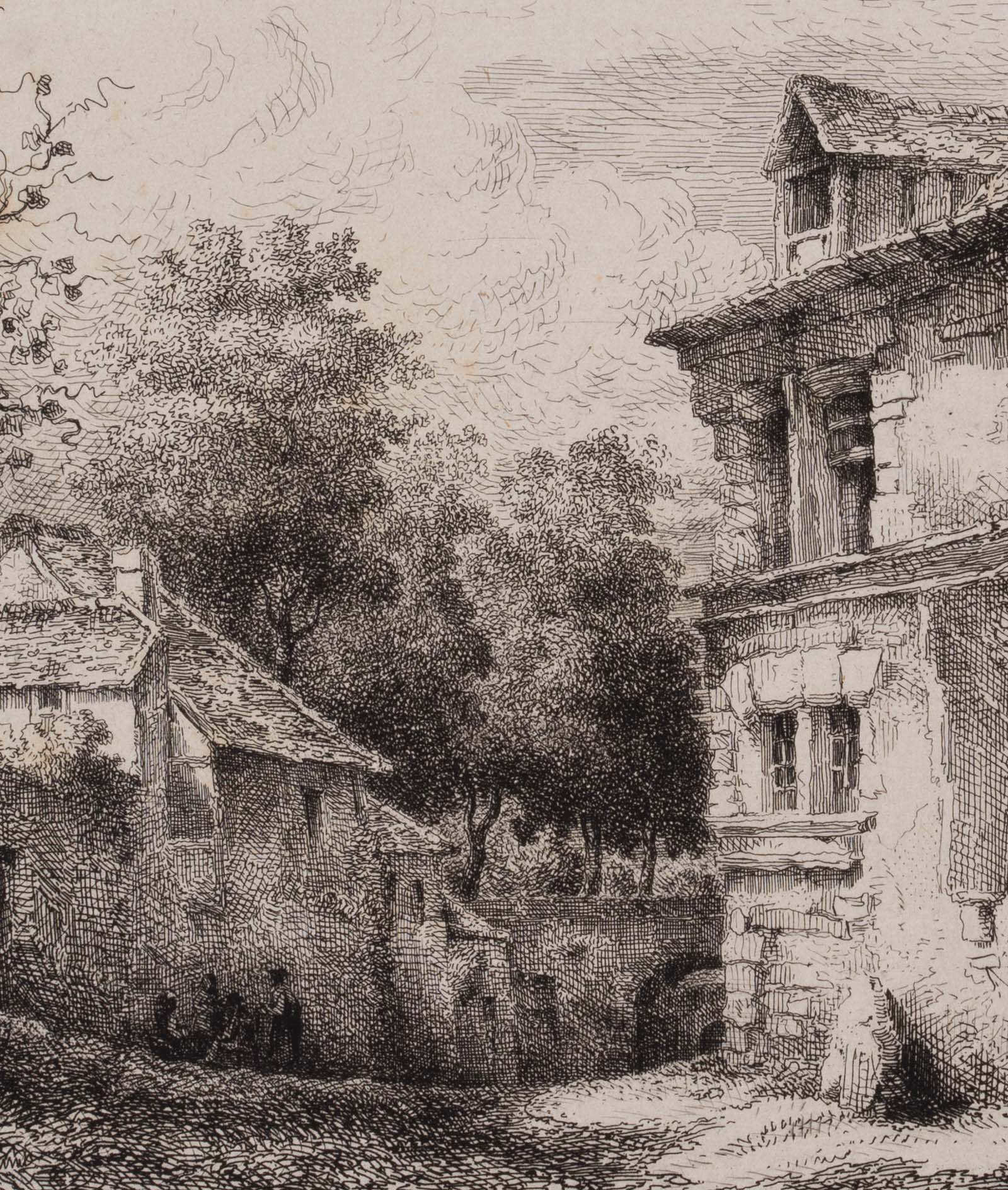 Louis Marvy (19th century) after Pierre Gabriel Berthault (1737 St-Maur (Seine) – 1831 Paris), View into the courtyard of an old farmstead, 19th century, Etching