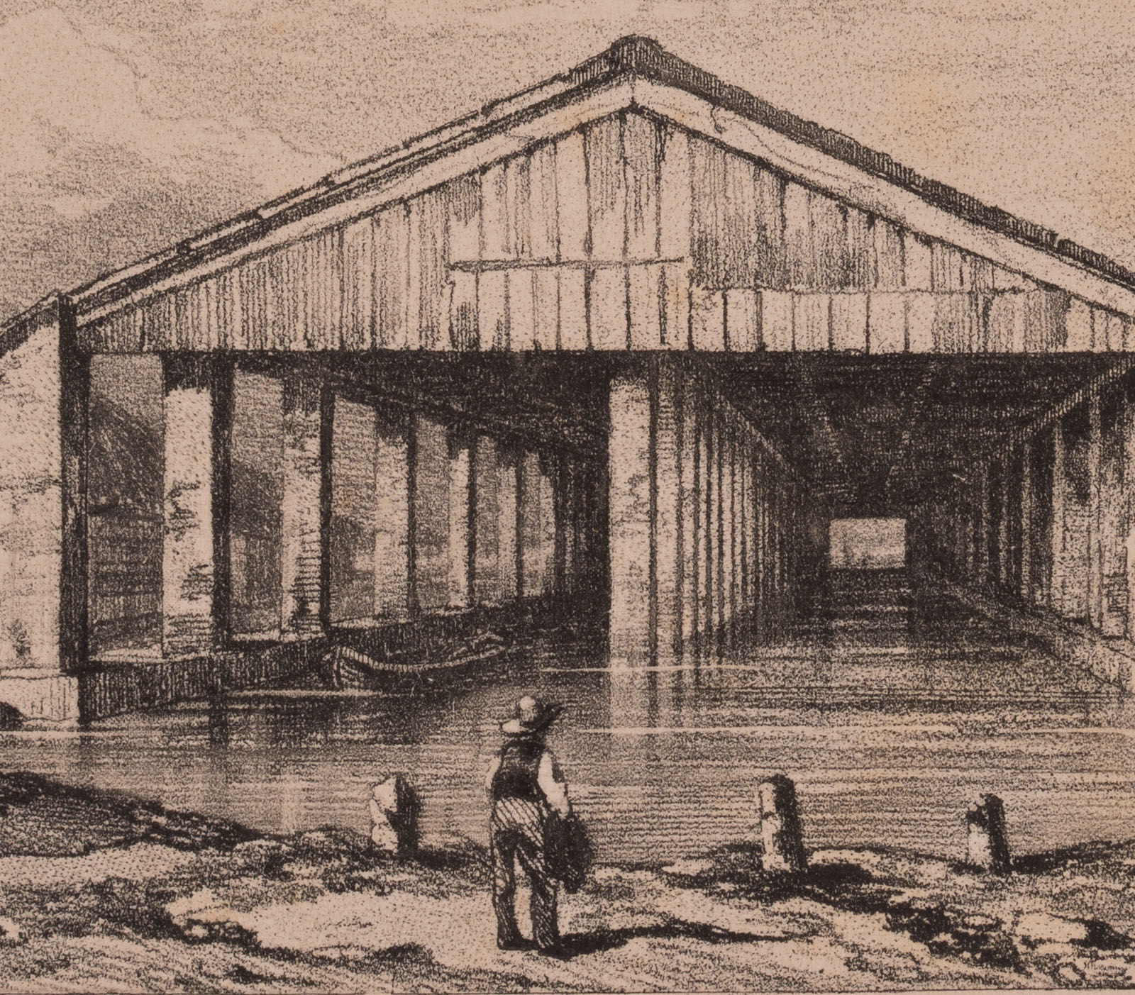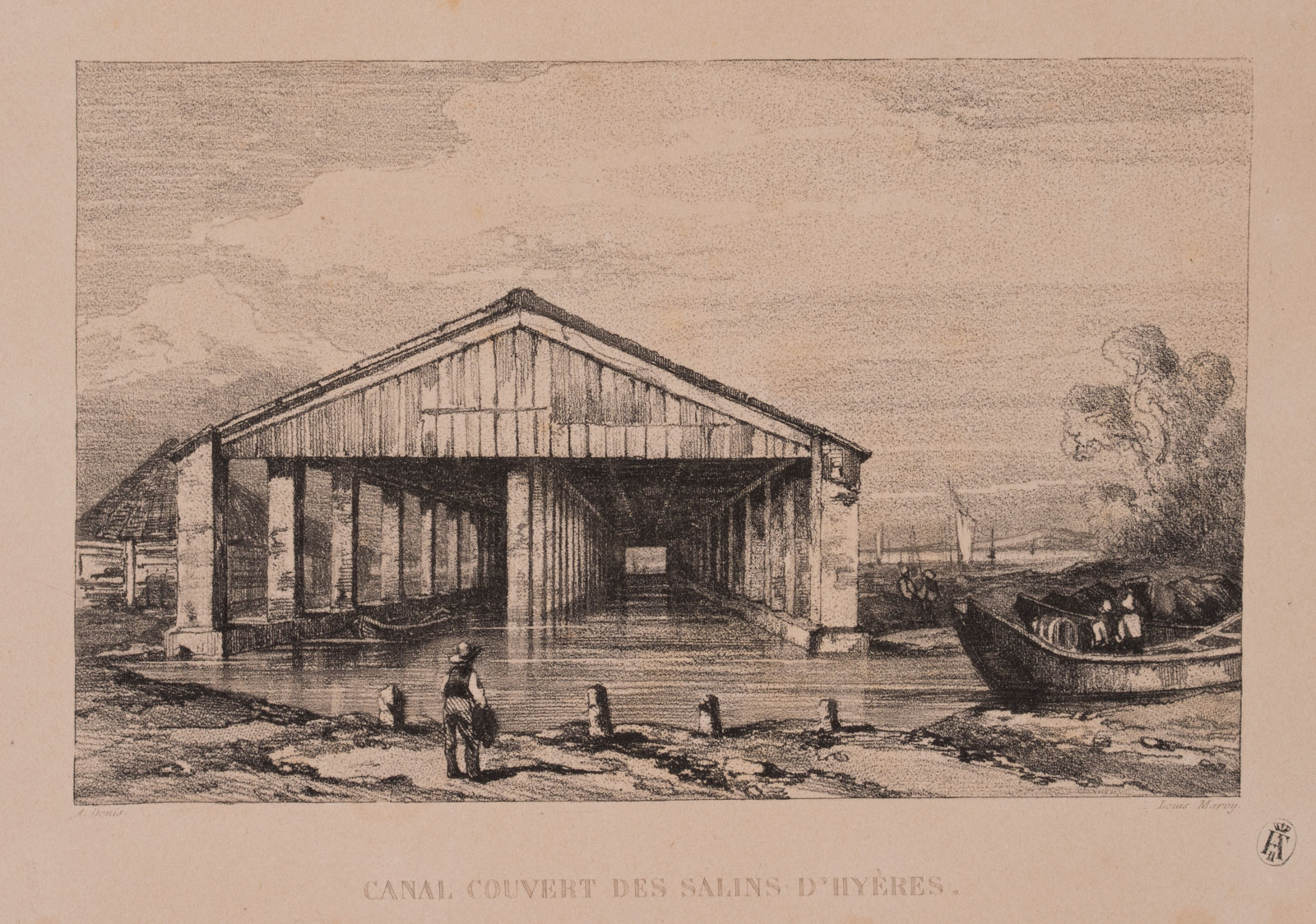 Louis Marvy (19. Jahrhundert) nach A. Denis (19. Jahrhundert), ‘Canal couvert des salins d’Hyères’ – Überdachter Kanal der Salinen von Hyères, 1843, Vernis Mou