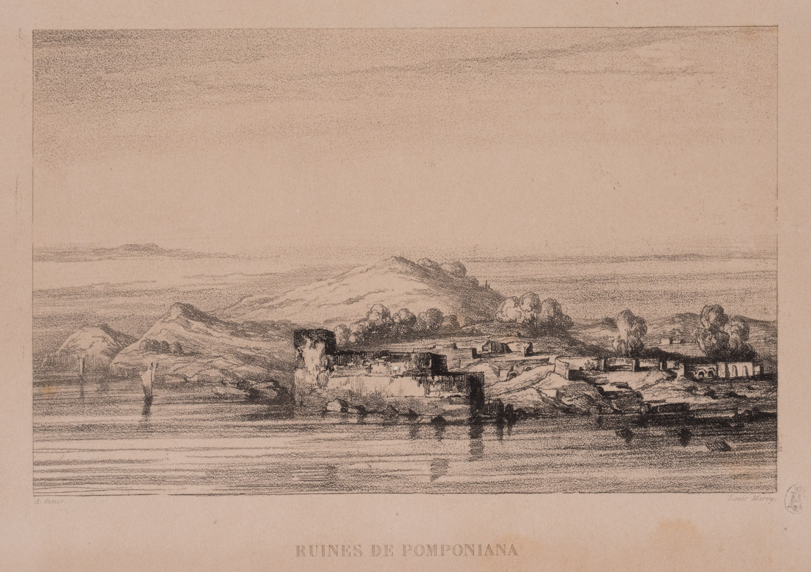 Louis Marvy (19th century) after A. Denis (19th century), Ruins of the Greek-Roman city of Olbia-Pomponiana near Hyères in southern France, 19th century, Vernis Mou