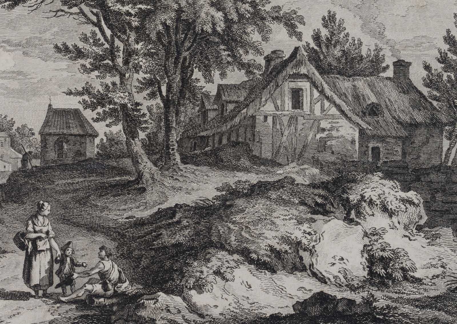 Louis Joseph Masquelier (1741 – 1811 ibid.) after Jeann Deny (1749 Paris – after 1815 ), View of a landscape with a farmstead, c. 1800, Copper engraving