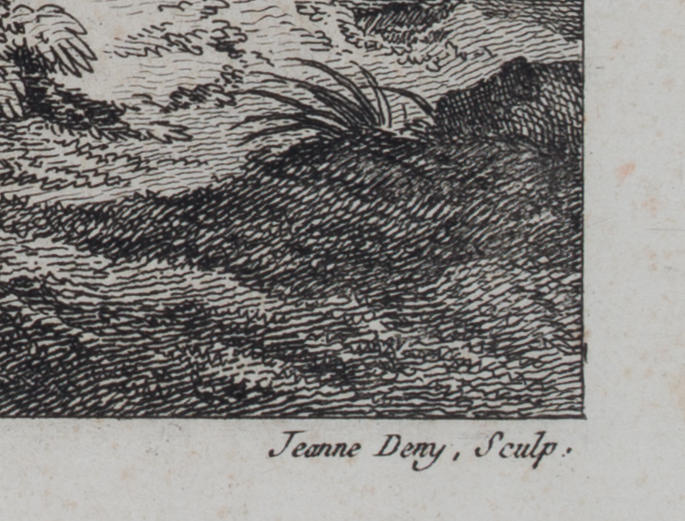 - Bezeichnung: Unten rechts im Druck signiert: „Jeanne Deny Sculp.“. Unten links im Druck bezeichnet: „Louis Masquelier delin.“.