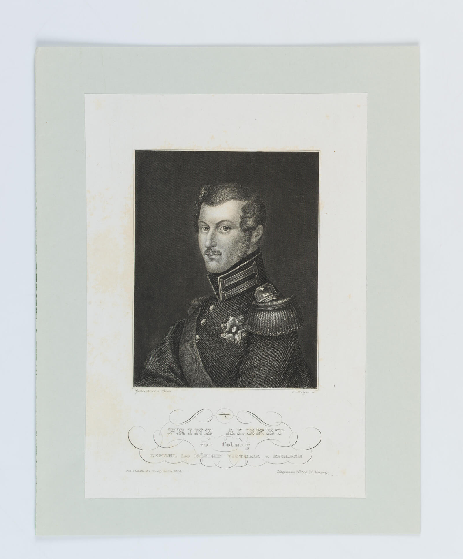 - Inscription: Lower middle signed in the printing plate: “Gezeichnet v. Reiss; C Mayer sc.”.
