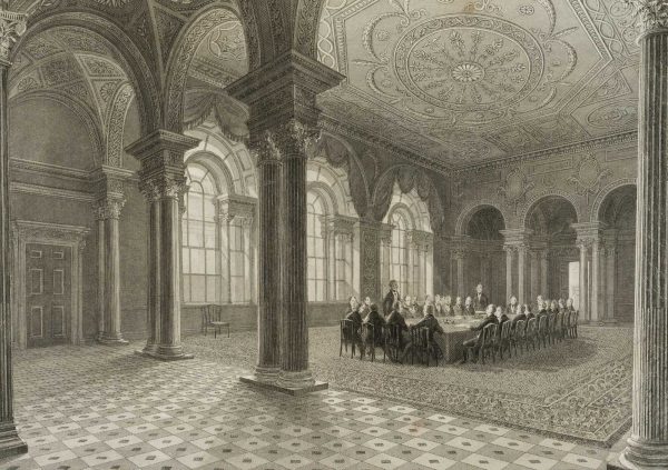 Henry Melville (1826 – 1877 ) after Mackenzie (19th century), The Bank Parlour – Parlour at the Bank of England, 19th century, Steel engraving