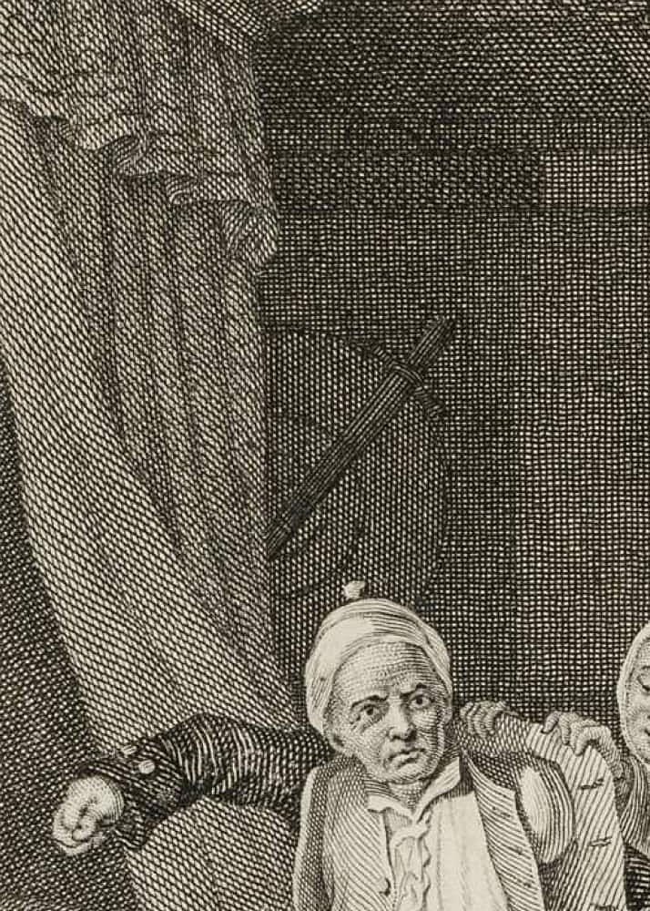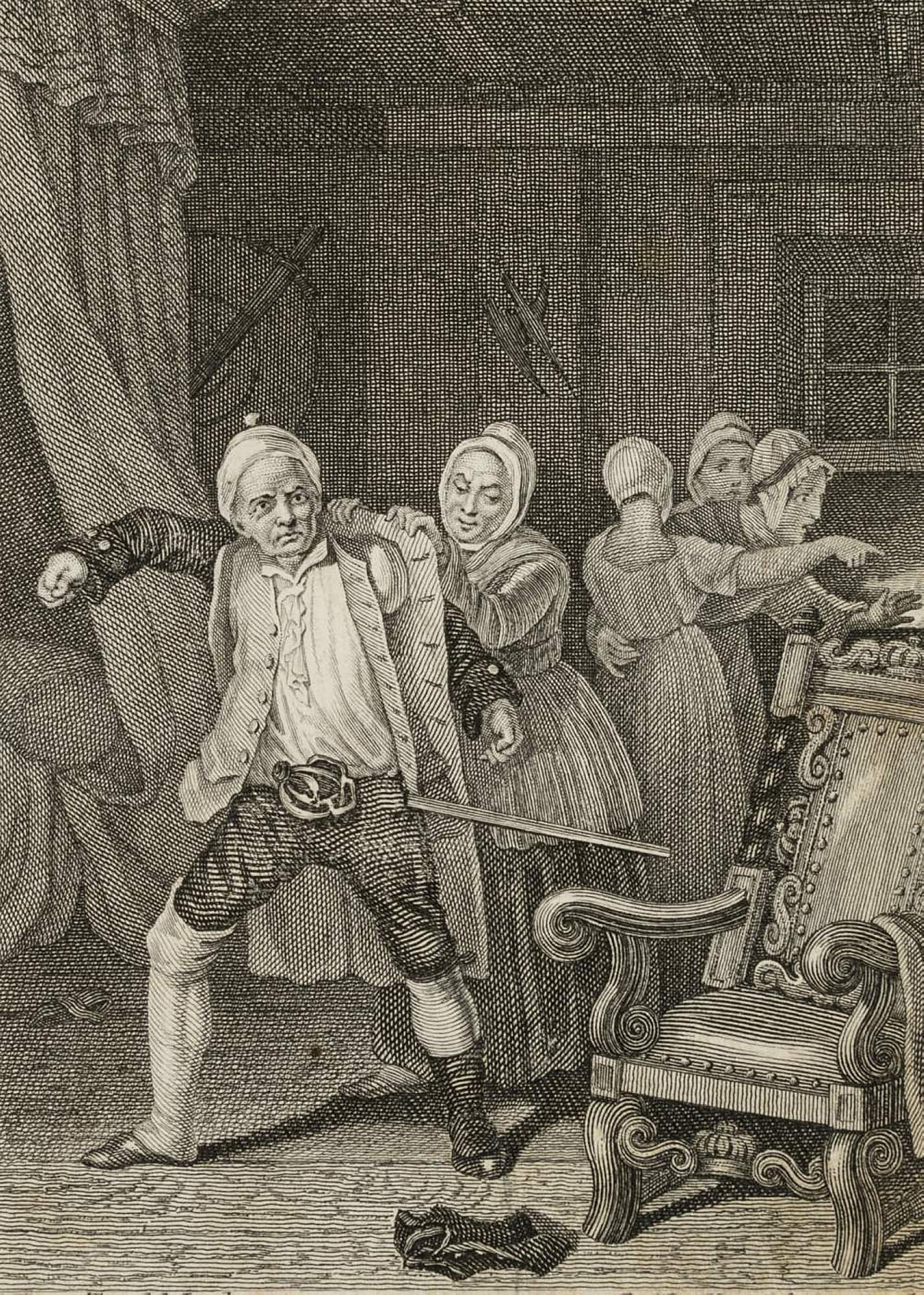 - Description: Miniature costume scene. Illustrates the German translation of Walter Scott’s novel “The Antiquary”.
