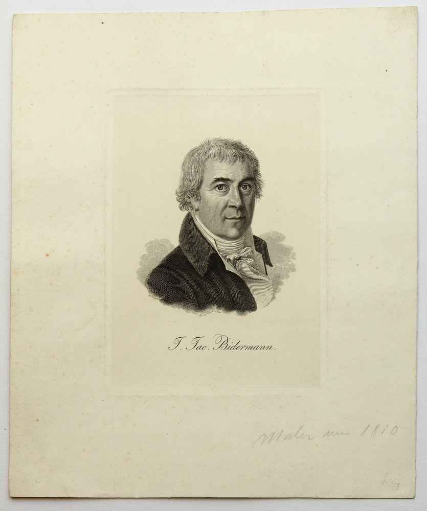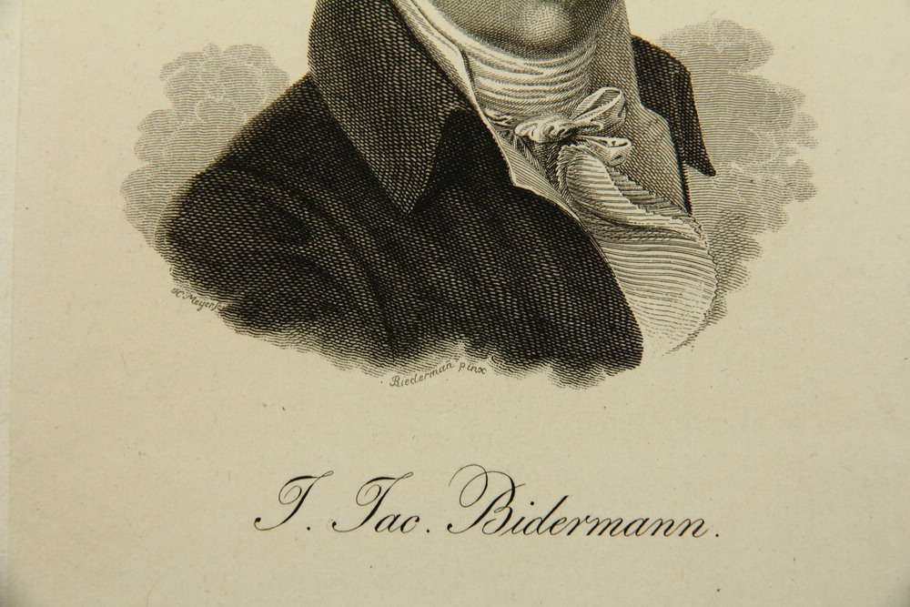 Heinrich Meyer (1802 Zürich – 1877 ebd.) nach Johann Jakob Biedermann (1763 Winterthur – 1830 Aussersihl/Zürich), Joh. Jakob Biedermann (1763-1830), 18. Jahrhundert, Kupferstich