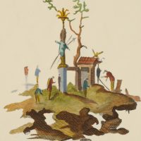 - Technique: Hand colored Copper engraving on Paper, mounted on Cardboard