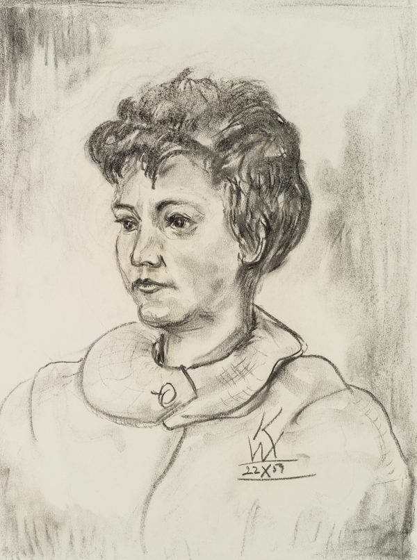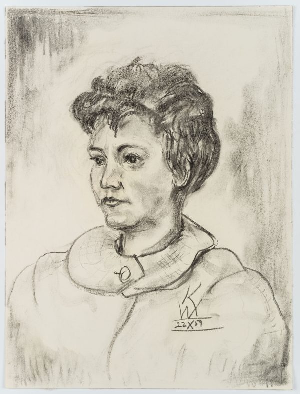 Monogrammist KW (20th century), Portrait of a Lady, 1959, Charcoal