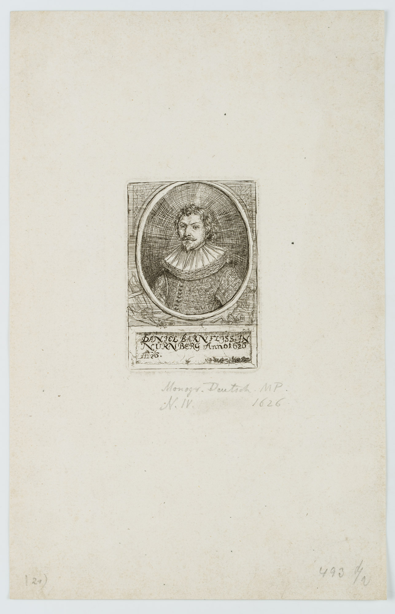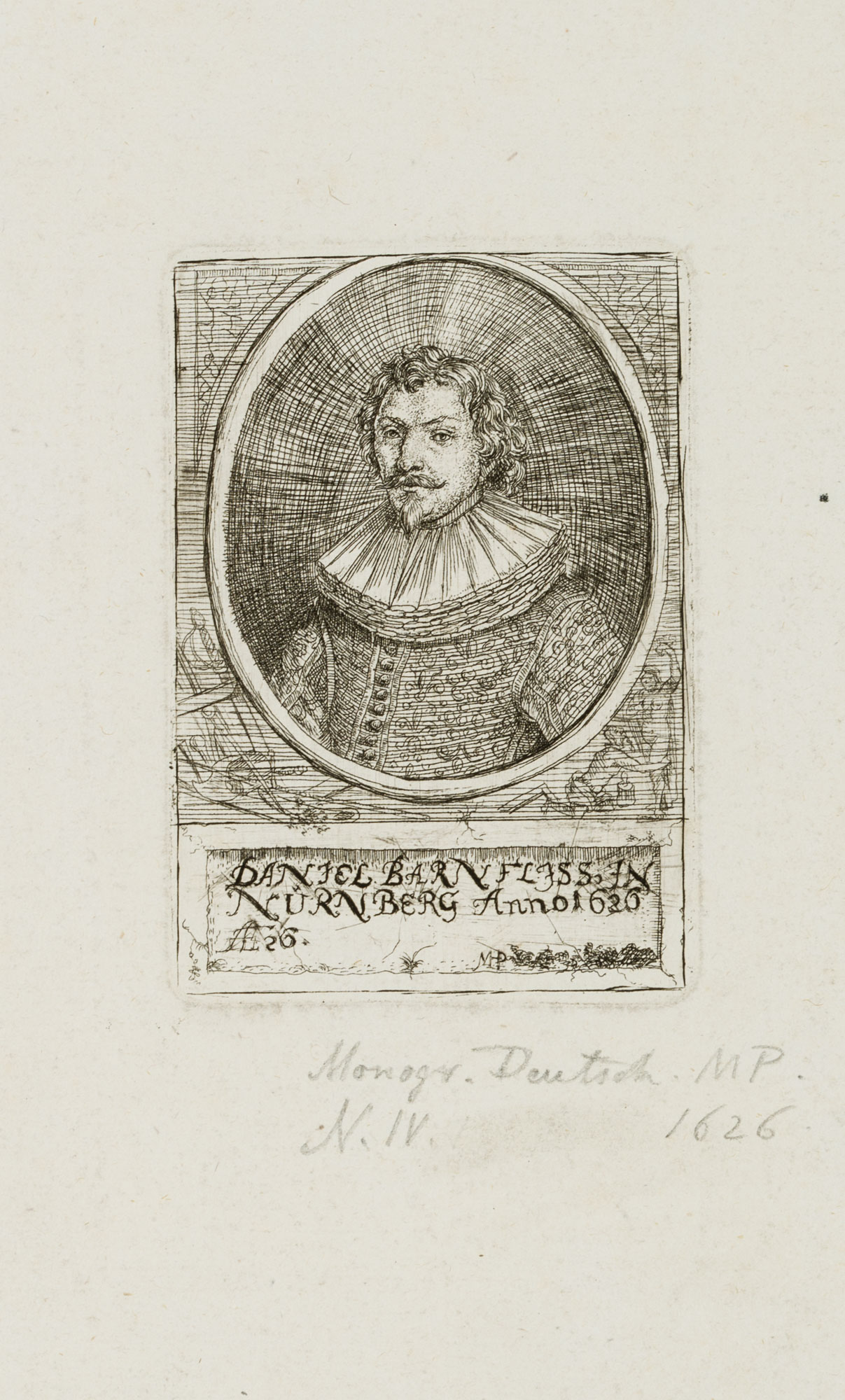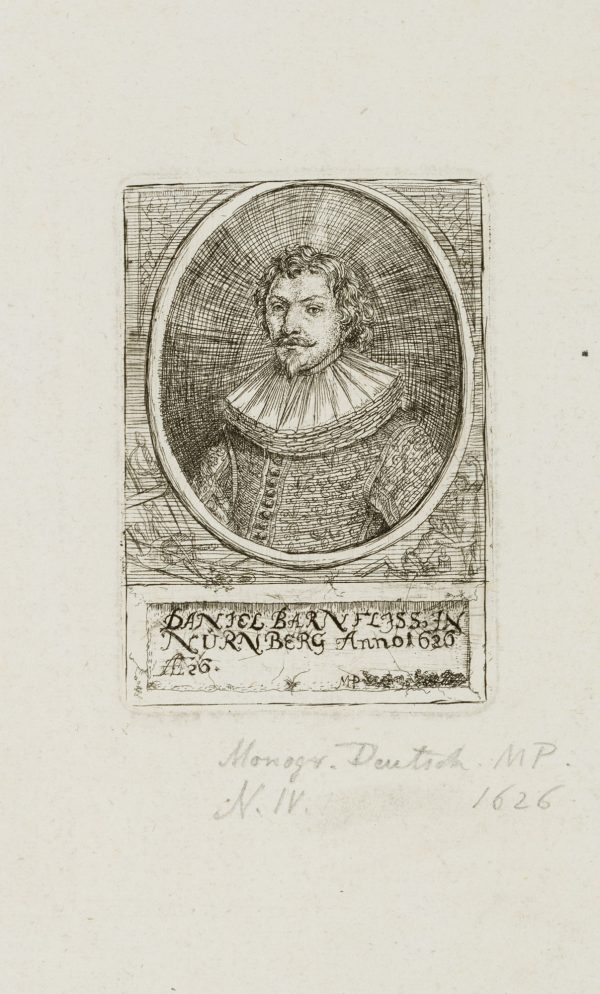 Monogrammist MP (17. Jahrhundert), Brustporträt des Daniel Barnfliss in Nürnberg, 1626, Radierung