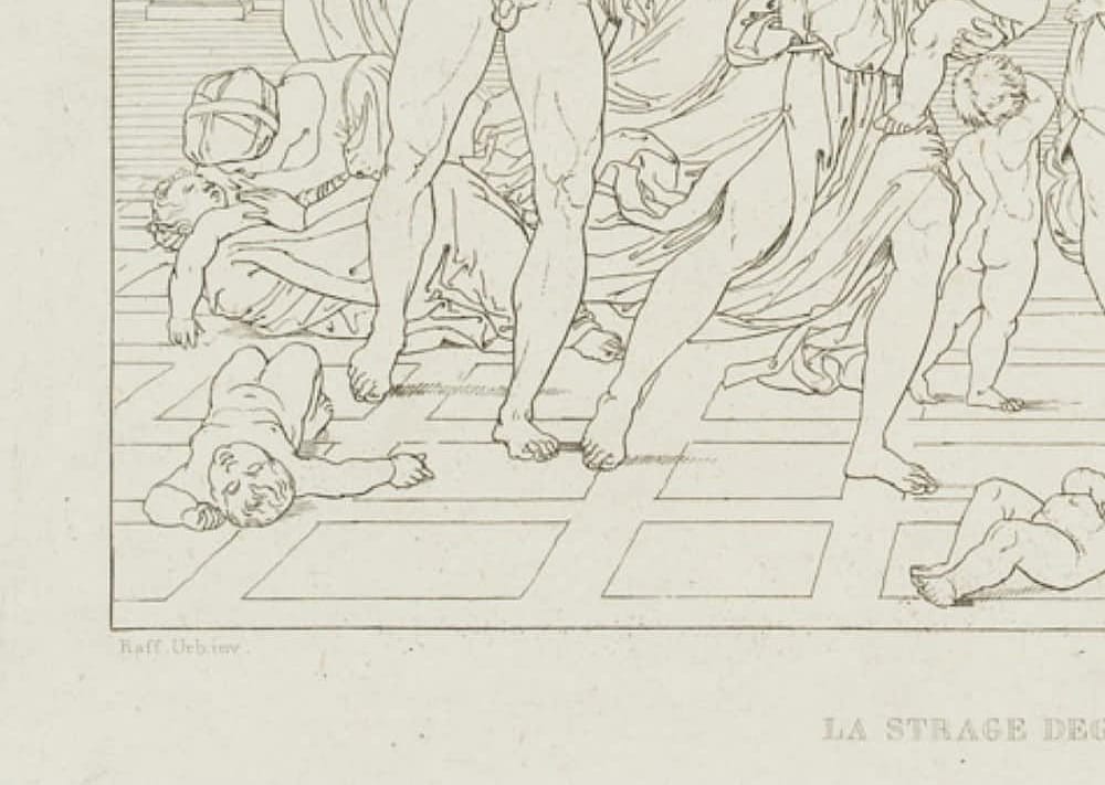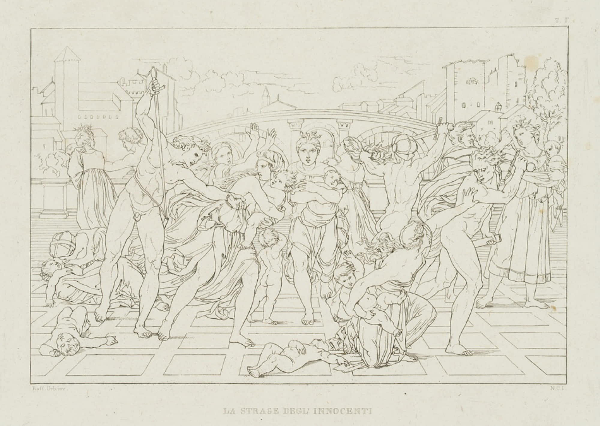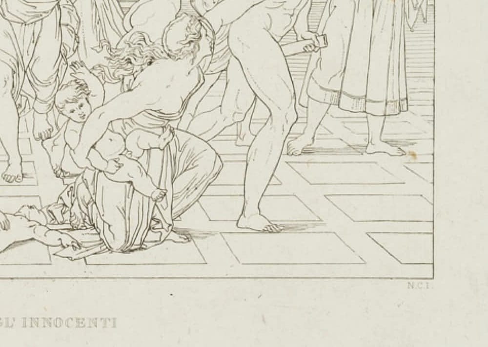 Monogramm NC (19.Jhd) nach RAFFAEL (*1483), Bethlehemitischer Kindermord, Umzeic