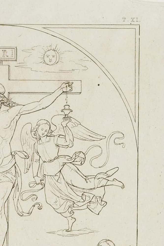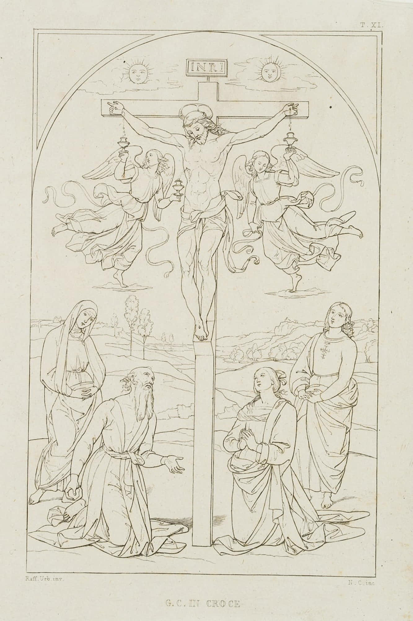 Monogrammist NC (19. Jahrhundert) nach Raffael: Raffaello Sanzio da Urbino (1483 Urbino – 1520 Rom), Kreuzigung, Umzeichnung, 19. Jahrhundert, Radierung