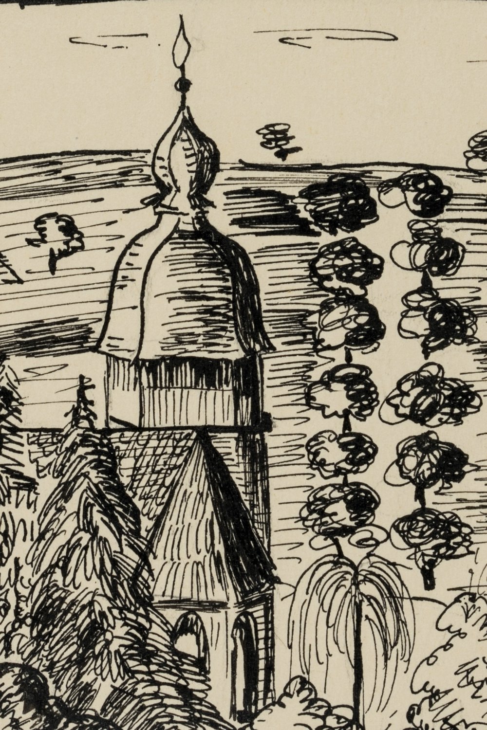 Monogrammist WH (19. Jahrhundert), Kapelle in österreichischer Landschaft, 19. Jahrhundert, Federzeichnung
