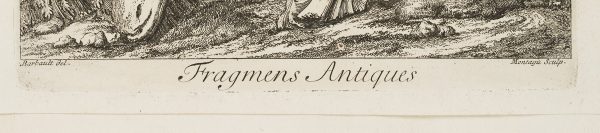 - Bezeichnung: Unten mittig signiert: ” “Barbault del.”, “Montagù Sculp./Fragmens Antiques””.