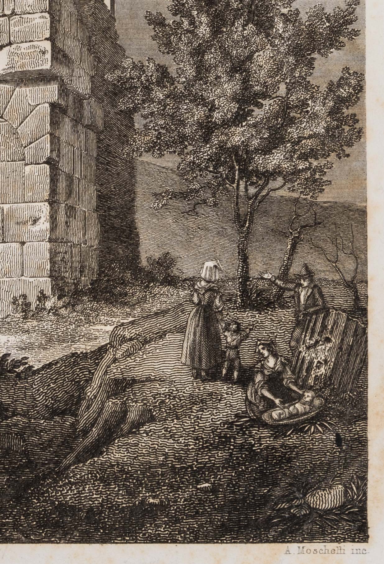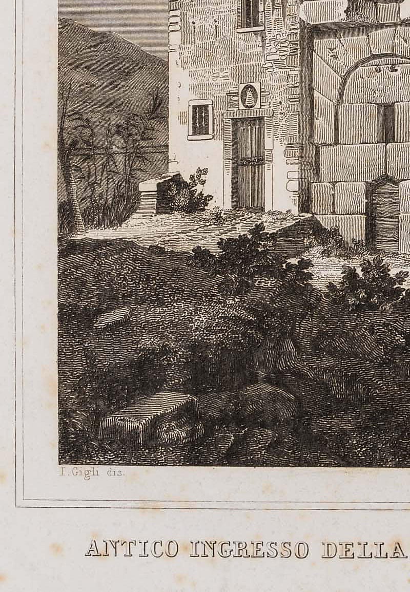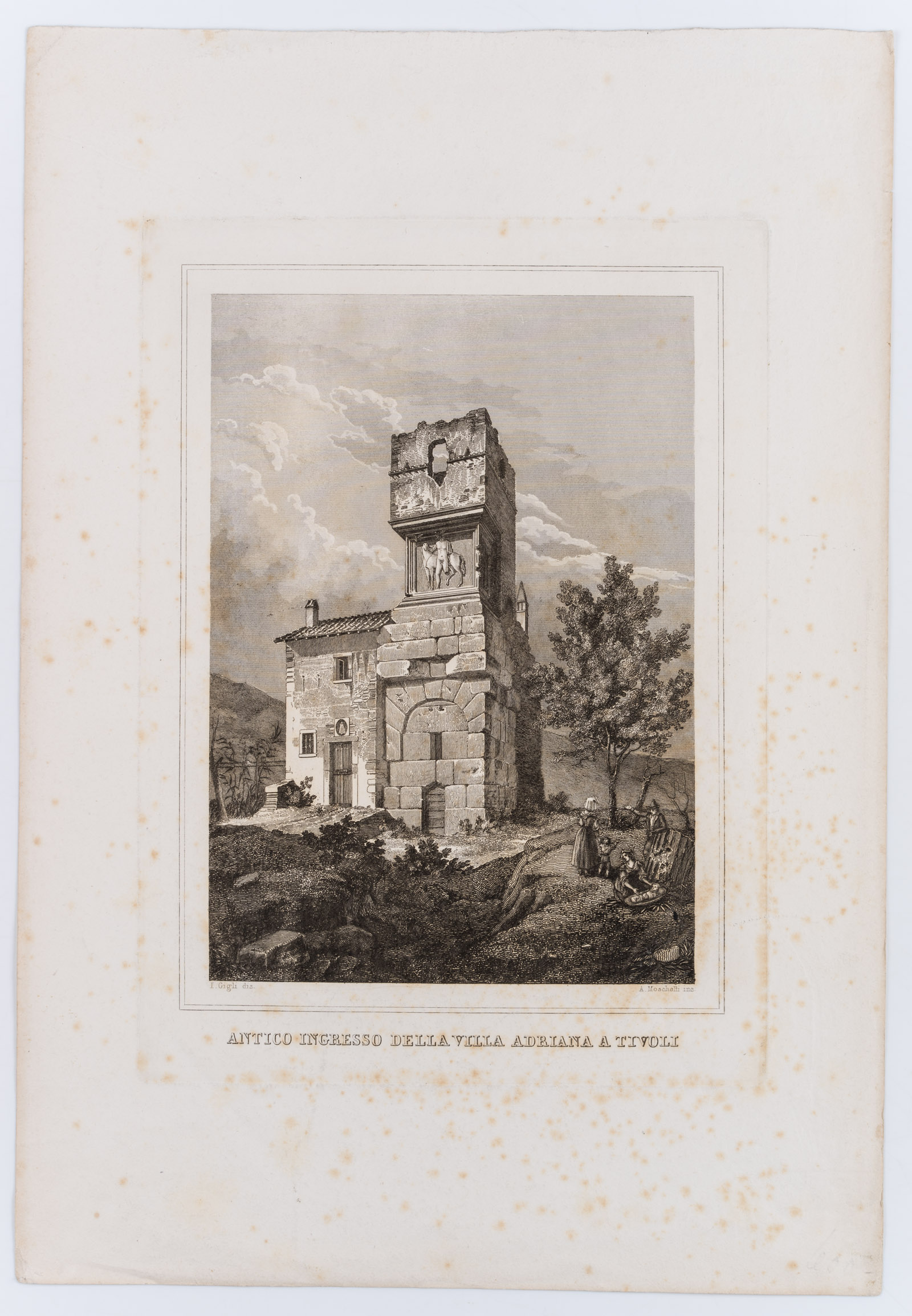 - Inscription: At the lower part signed in the printing plate: “I. Gigli dis / A. Moschetti inc.”. Lower middle inscribed in the printing plate: “Antico Ingresso Della Villa Adriana A Tivoli”.