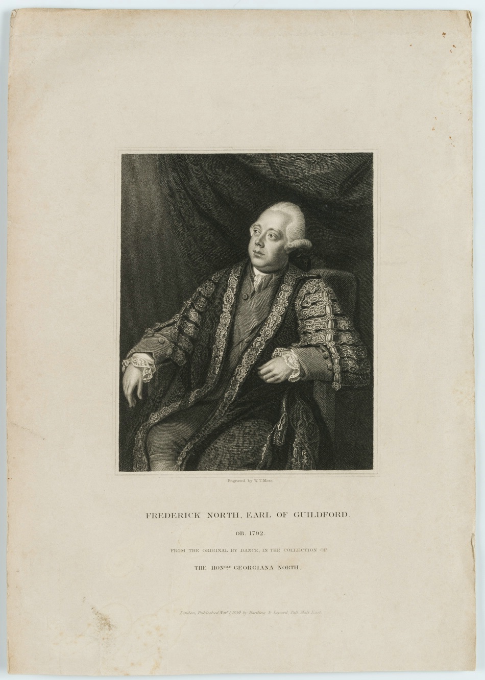 - Bezeichnung: Unten signiert und betitelt: “Frederick North, Earl of Guildford. OB. 1792. From the Original by Dance. in the collection of The Honble. Georgiana North.”