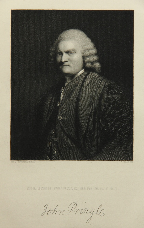 - Description: After an original by Joshua Reynolds (1723 Plympton – 1792 London). Half-length portrait. As a field physician he advocated the improved organisation of hospitals and the healing of the wounded. Later he became personal physician to the Duke of Cumberland and wrote medical treatises. Pringle is considered the forefather of modern military medicine.