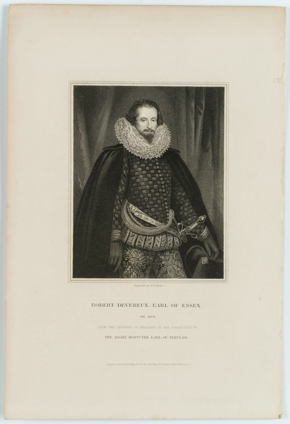 - Bezeichnung: Unten signiert und betitelt: “Robert Deverux, Earl of Essex. OB. 1601. From the Original of Hilliard. in the collection of The Right Honble. The Earl of Verulam.”