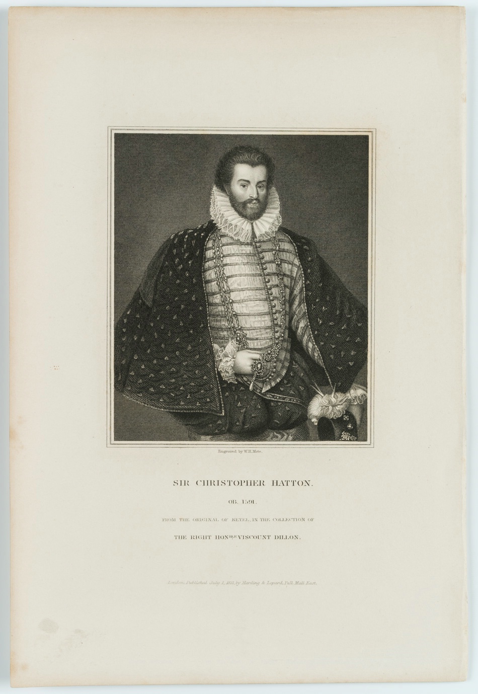 - Bezeichnung: Unten signiert und betitelt: “Sir Christopher Hatton. OB. 1591. From the Original of Ketel. in the collection of The Right Honble. Viscount Dillon.”
