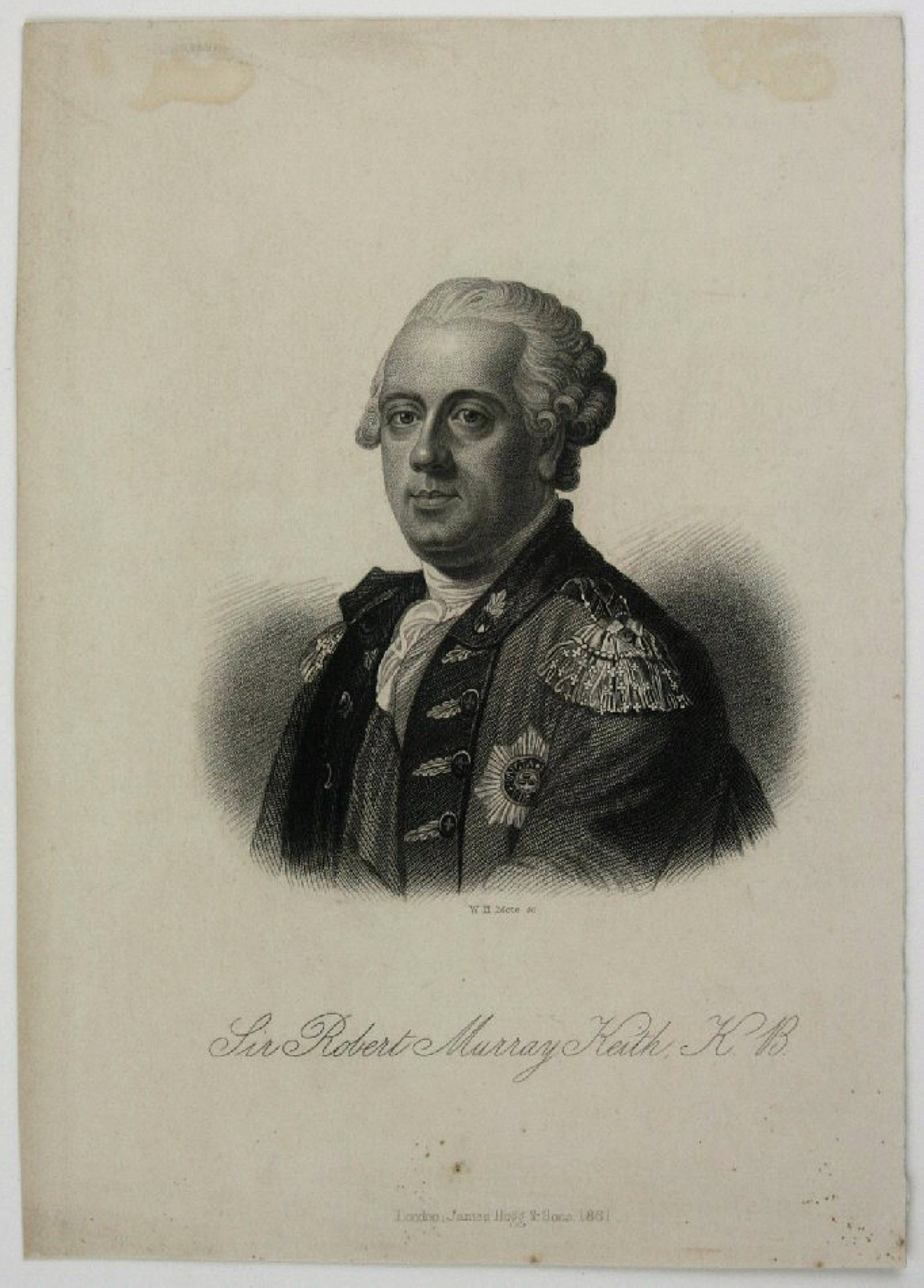 - Description: W. H. Mote, Sir Robert Murray Keith, steel engraving, 1861. Description:Steel engraving by W. H. Mote, inscribed: “W. H. Mote sc. Sir Robert Murray Keith, K. B. London: James Hogg&Sons, 1861”. Portrait of Sir Robert Murray Keith as a bust to the left. Wearing a white wig and a jacket with medals. Sir Robert Murray Keith (1730 – 1795) was an English diplomat, among others envoy at the Saxon court. W. H. Mote was a British steel engraver, first mentioned around 1850, last mentioned around 1907.