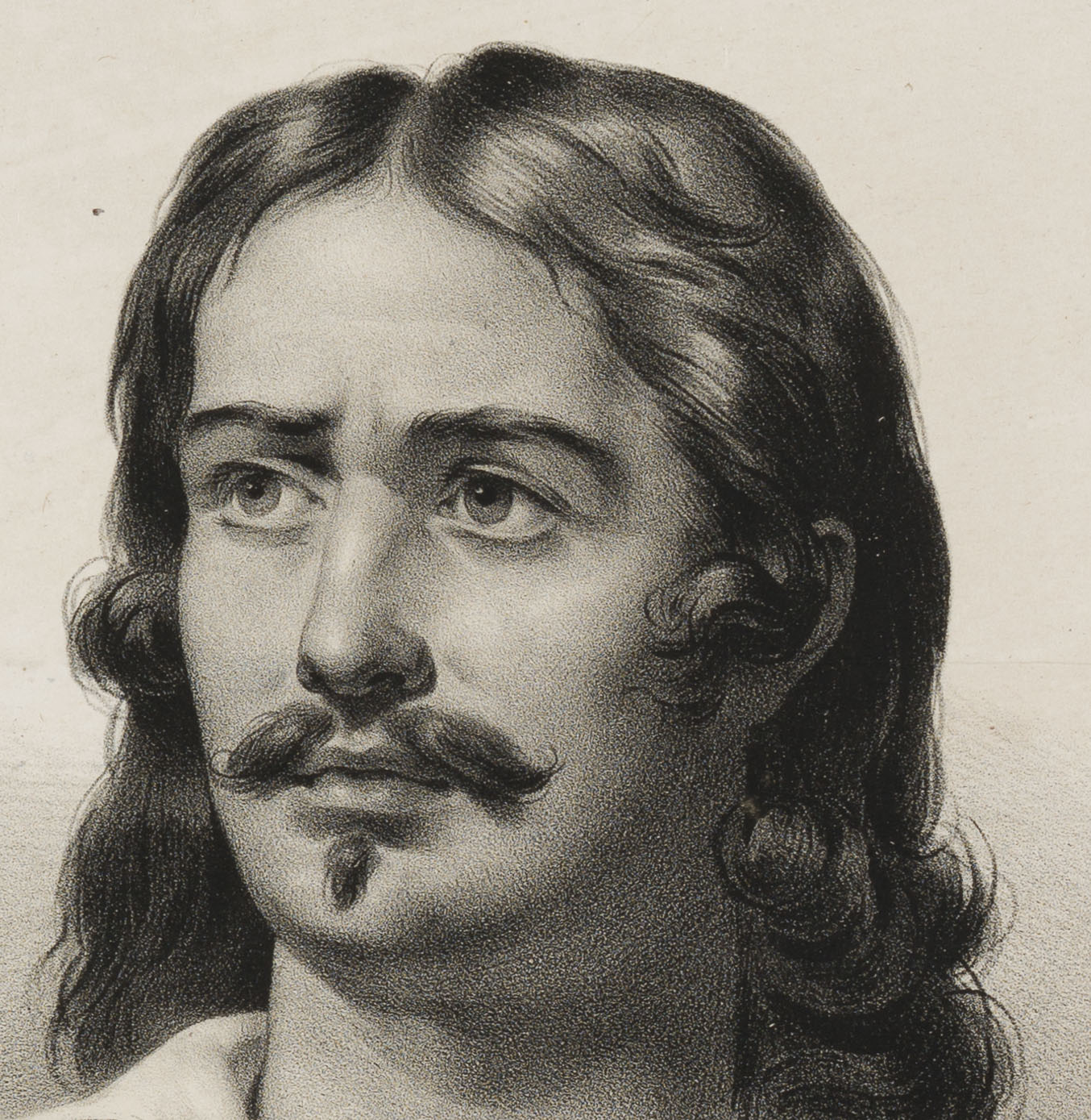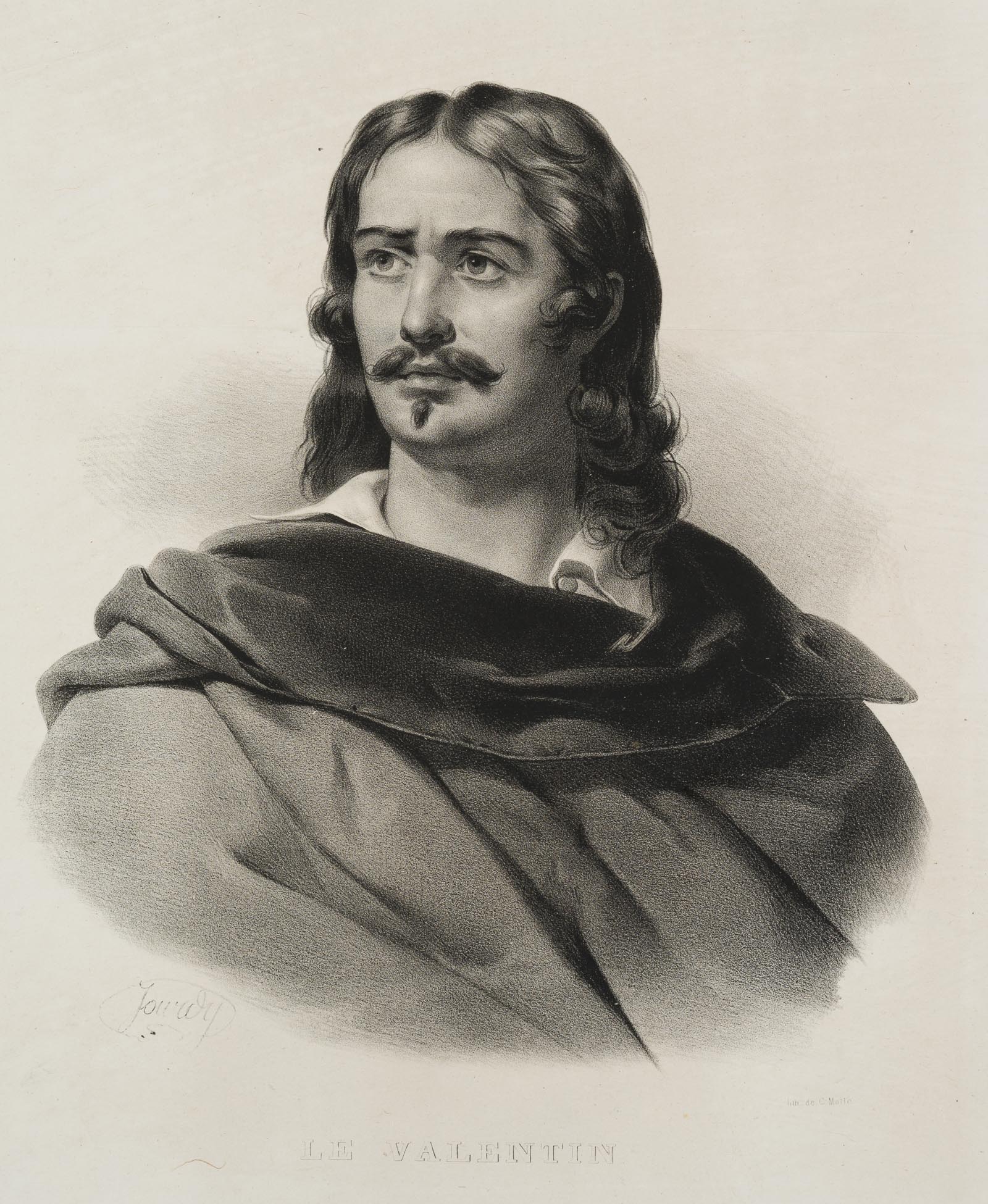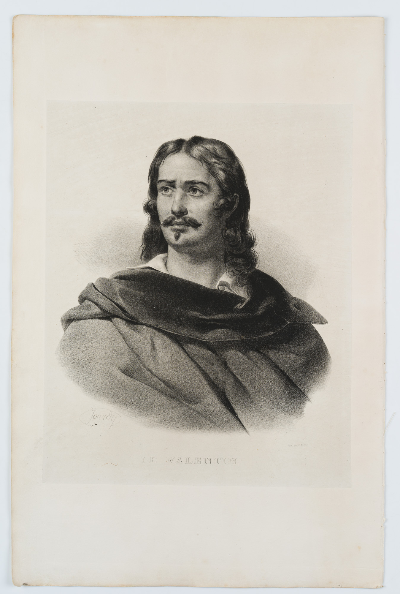 Charles Etienne Pierre Motte (1785 – 1836 ) after Paul Jourdy (1805 Dijon – 1856 Paris), Portrait Valentin de Boulogne, gen. The Valentine, c. 1830, Lithography